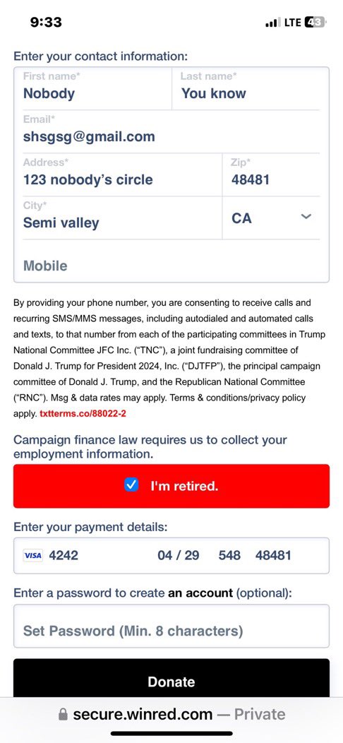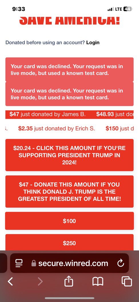 Same theory applied to Winred. Fake payment was rejected. https://t.co/vFmlwObs60