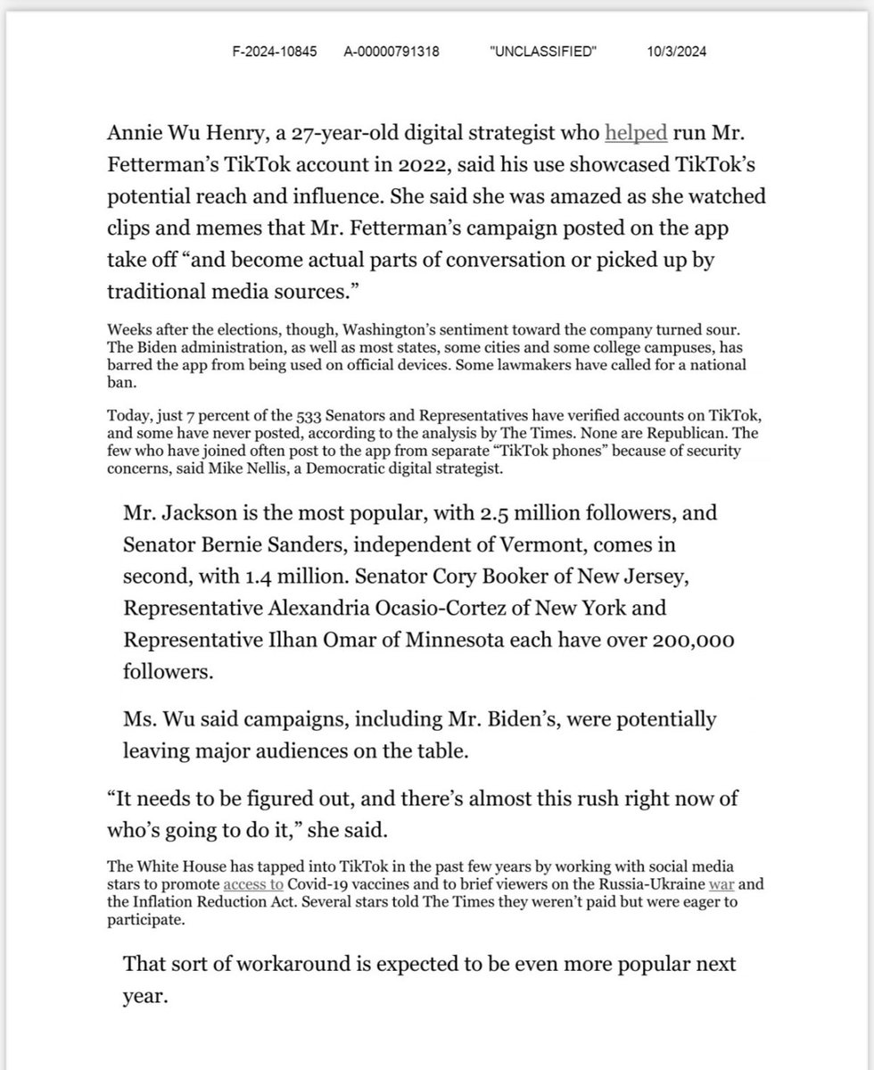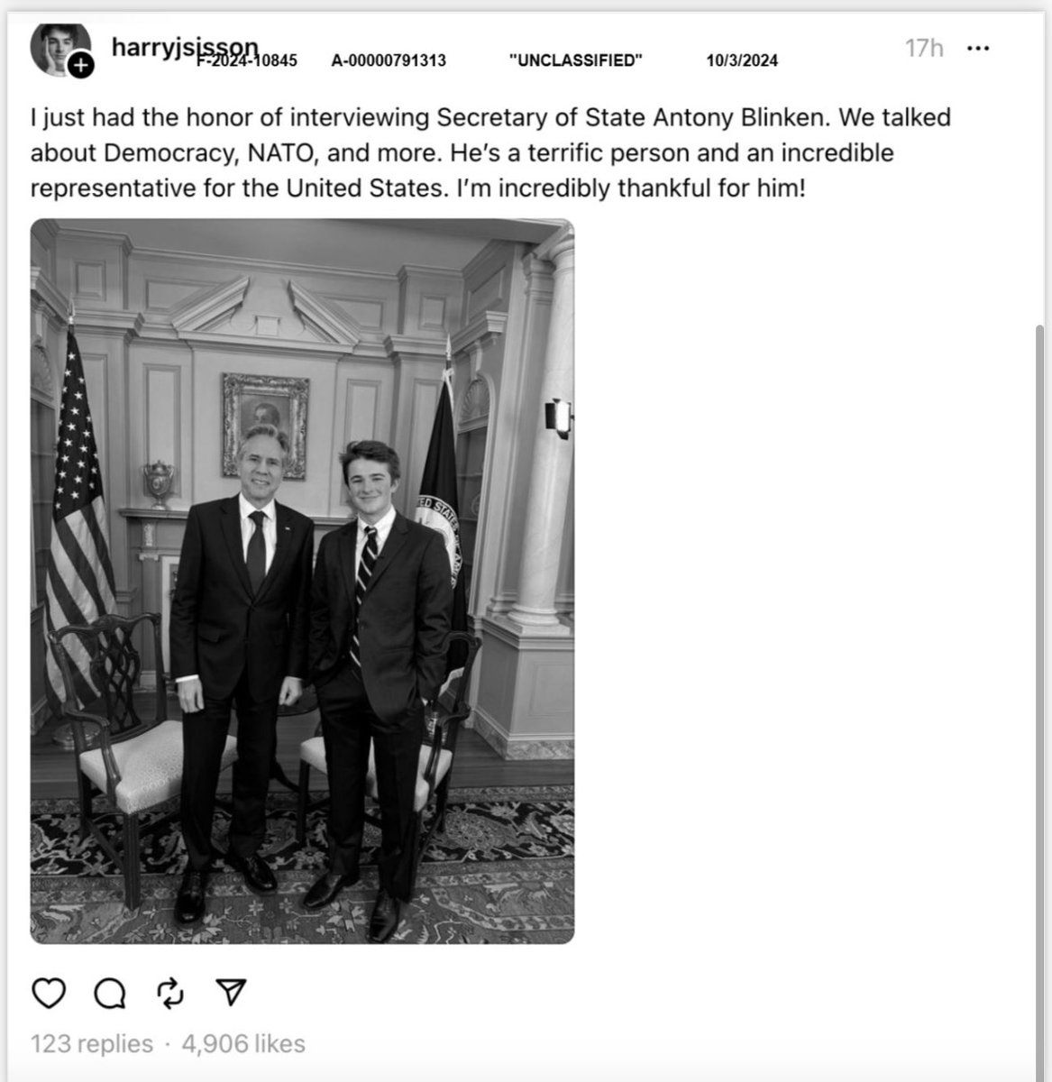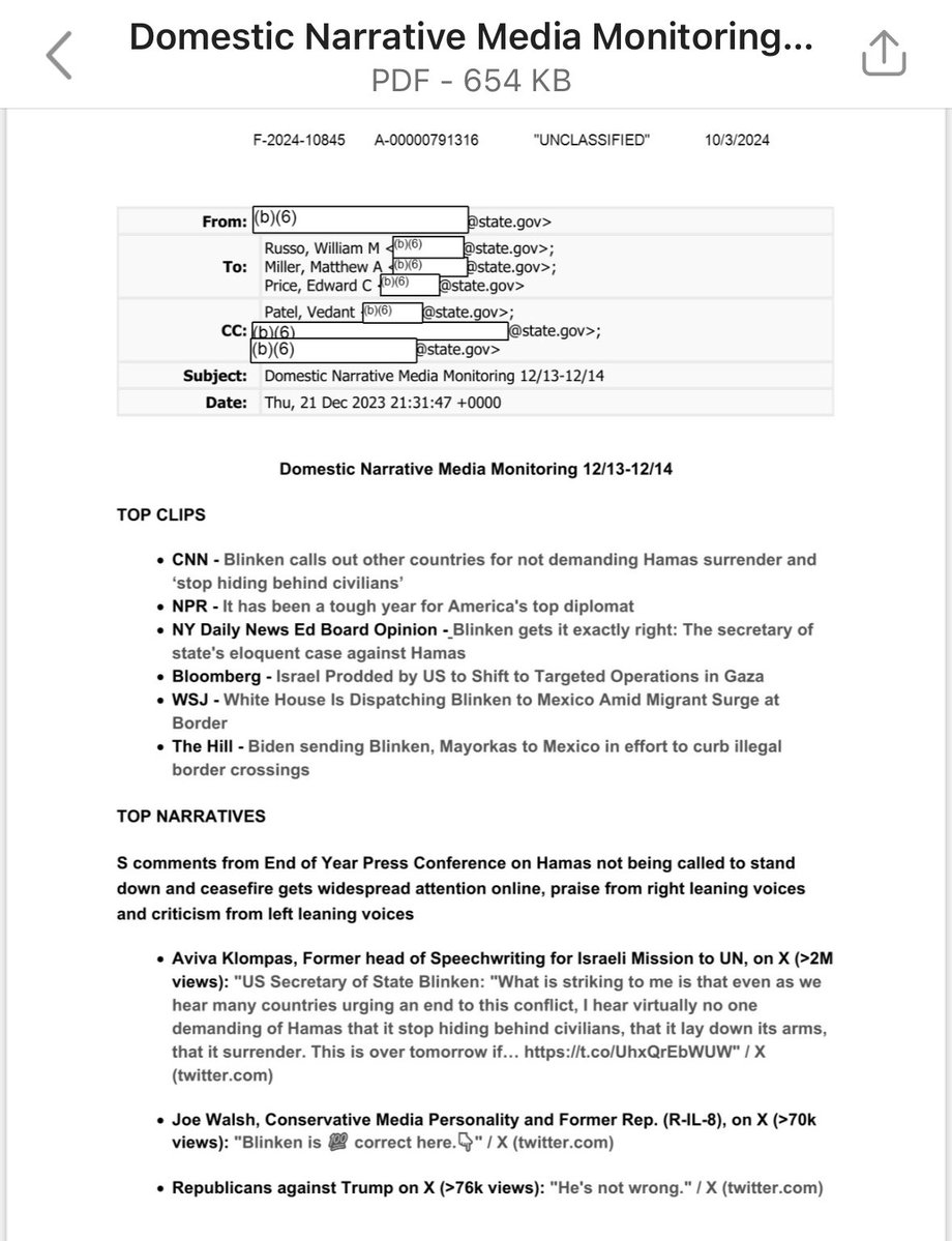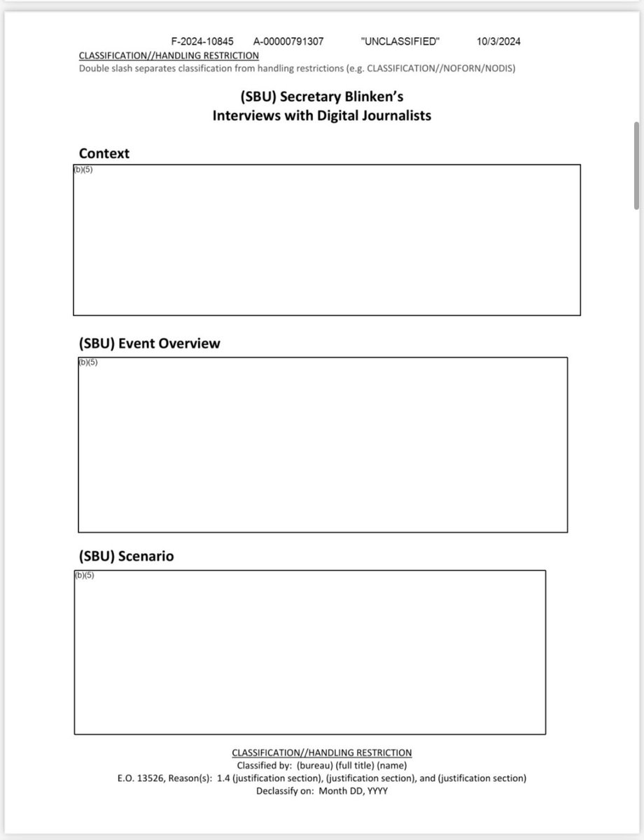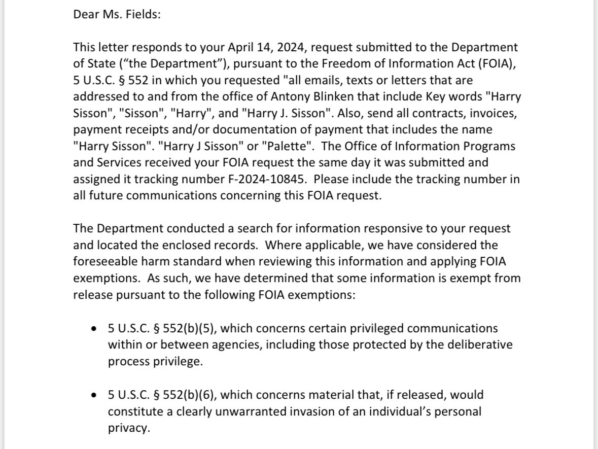 🚨Open Records Reveal: Harry Sisson Not Only Received Coaching and Scripts for His Interview with Secretary of State Blinken, But Has CONTINUED to Receive Scripts for TikTok from the Secretary of State as Recently as October 2024 🚨 In April 2024, I released requested records from the Office of Governor Josh Shapiro. The records reveal texts, emails and correspondence between the Governor’s office, Harry Sisson and Palette Media. We already know Harry is being paid. This was proven repeatedly by myself and MULTIPLE others, I didn't aim to keep rehashing the worn-out issue of Harry's compensation. The records I obtained don’t just prove he was paid, but that his “interviews” are not organic. He is a used, coached puppet by the left with little to zero original thought. Every question is scripted, coached and timed. And when Sisson wanted to ask his own questions, he had to receive approval from Shapiro’s staff. This reveal was received with outrage from the left and right alike. As you can see in a video screen of Harry’s live, he desperately attempted to discredit my report. He stated that he was never coached and that it was all a conspiracy theory. Even though my records came straight from the office of Shapiro. My records also revealed that there are serious legal implications to how Sisson and many other influencers are operating. The courts have upheld disclosure laws over and over again. With the general consensus being that “disclaimers provide critical information about advertising sources so that the electorate can more effectively judge the arguments they hear” (FEC website). I will attach my prior post on Sisson and Shapiro in the thread. It is an important part of my release today. Why? Because NOW officials have started COVERING for Harry. The official letter sent to me, along with the Sisson file, made it clear that redactions would be made because of what the office of the Secretary of State called “foreseeable harm”. (What harm? EXPOSURE?) What was redacted? 👉👉Harry’s SCRIPTS were redacted. The following thread contains the full file I received. The records show that this goes much deeper than Harry Sisson. The file shows that TikTok creators are being used to influence the election, with zero disclosure. Certain narratives such as “h@m@s is being asked to ceasefire” and that the “Ukraine War is a LONG war”. Also an interesting side-note, William Russo, the Assistant Secretary Bureau of Global Public Affairs, went on sabbatical in April 2024, directly after these records were requested. (Continue in 🧵)