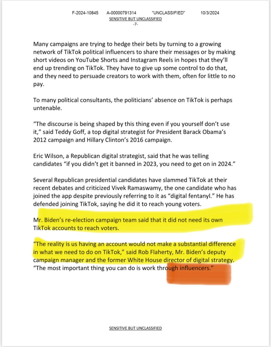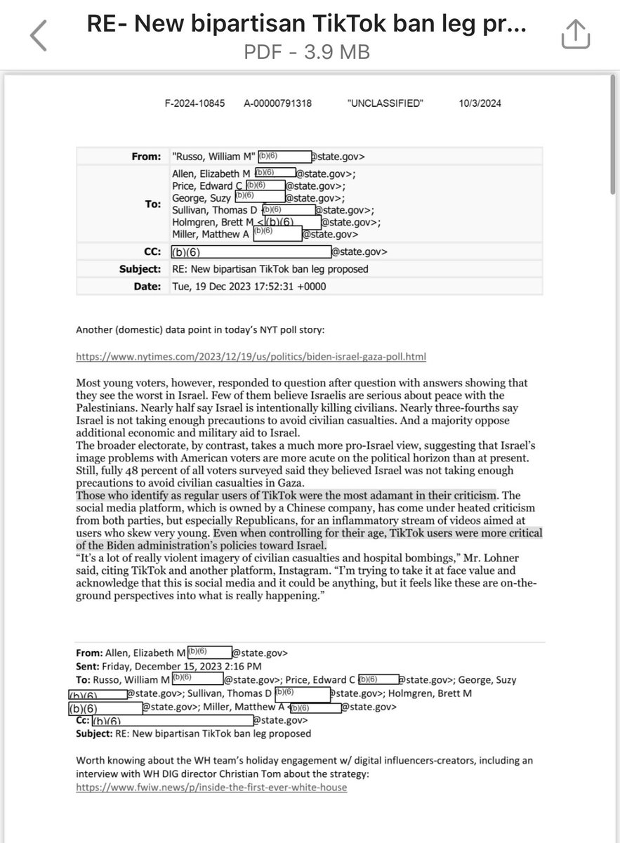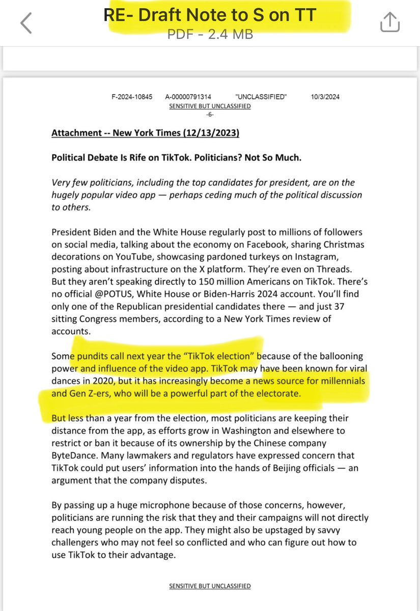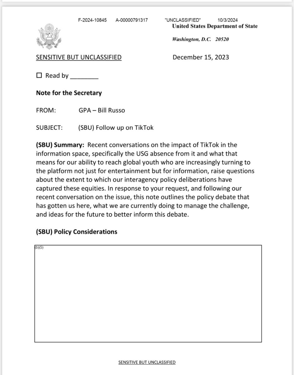 (Sisson Thread Pt 5). Redacted policy points made on the “impact of TikTok” https://t.co/jZc560G0Bc