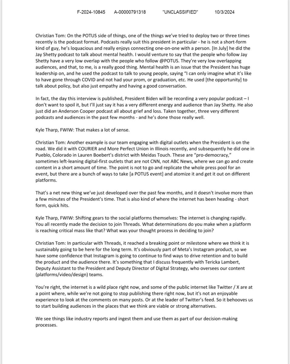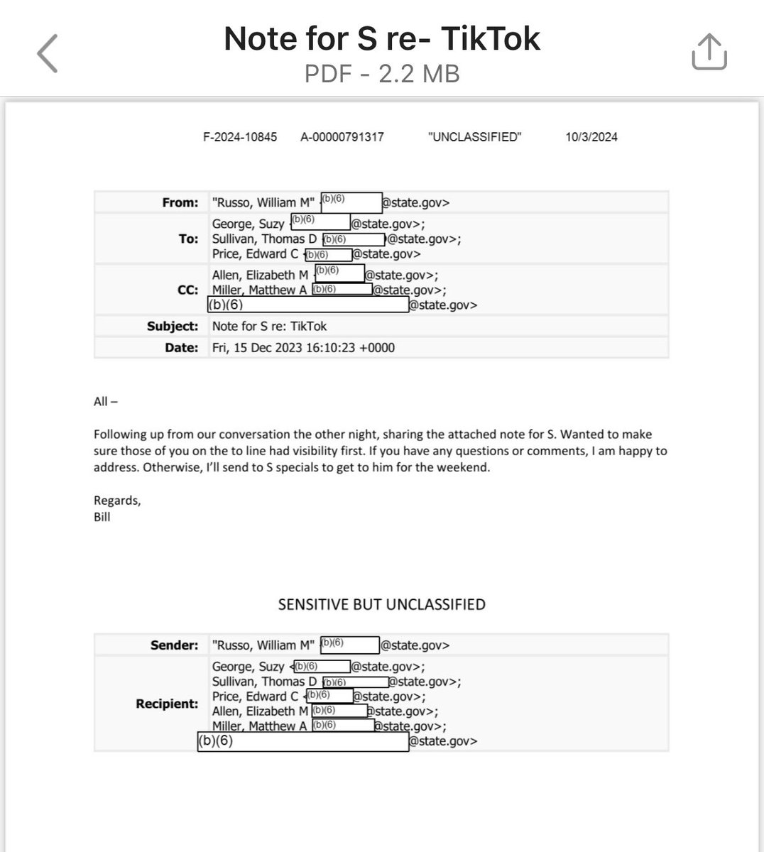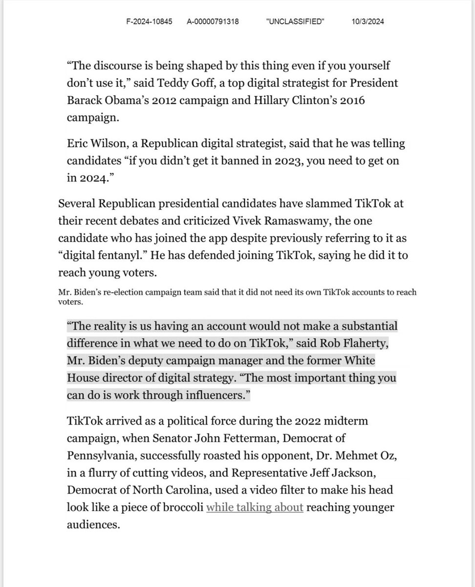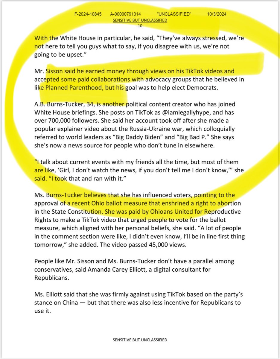 (Sisson Thread Pt 5). Redacted policy points made on the “impact of TikTok” https://t.co/jZc560G0Bc