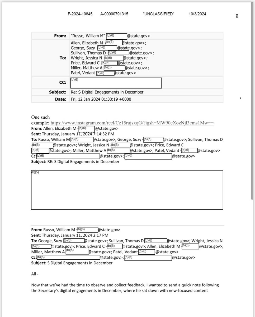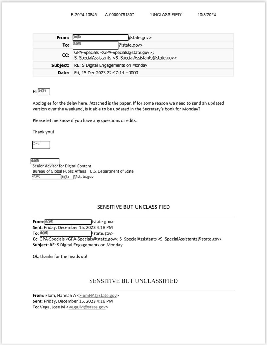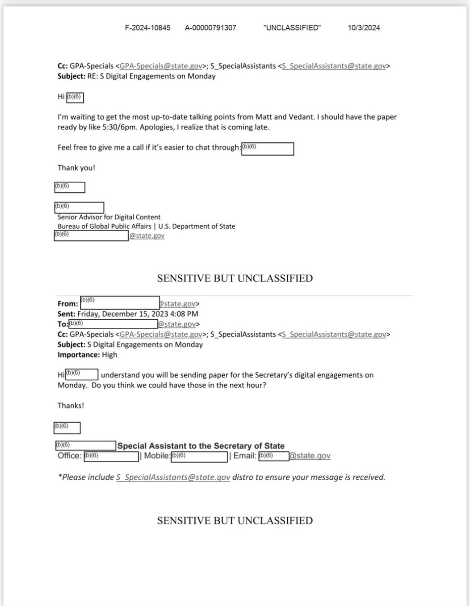 (Sisson Thread Pt 3). Emails shared on the 15th of December, just before Sisson’s “interview” with Blinken. Scripts redacted. Emails mentioned digital content and engagements. Talking points. https://t.co/KHC9dvH1VF