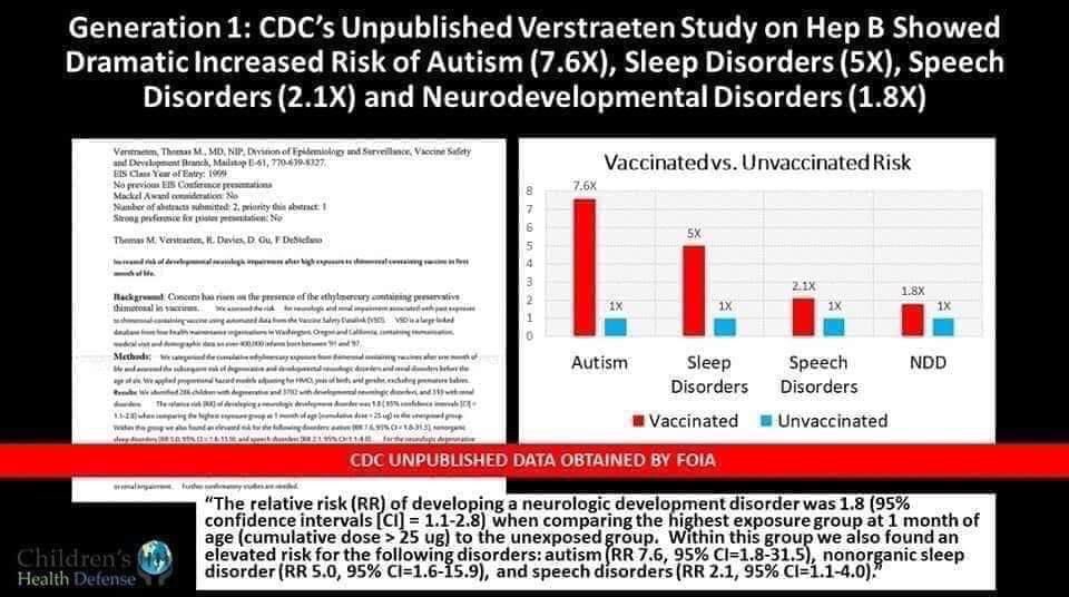 🚨Records through a FOIA provided by the CDC - A Thread 🚨 I cannot make it clear enough how important this is. And how important it is that the American people SEE THIS. For a very long time, many Americans were under the impression that the CDC would not do a Vacc*nated vs. Unvacc*nated study on the health outcomes of our children. But, They actually did, back in 1999. Why didn’t we know? Because the results were so d@mning against va((ines, that they deliberately hid it from the public. But thanks to Robert F. Kennedy Jr. and the Children's Health Defense, they were able to obtain the records through a FOIA request several years ago. So here it is: A Vacc*nated VS Unvacc*nated Study done by yours truly, the CDC..