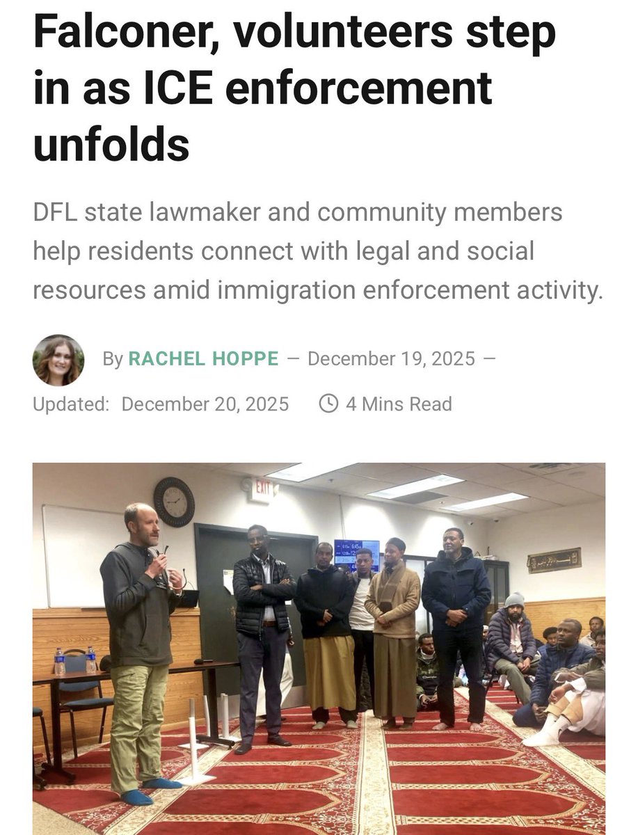 Two weeks ago, I reported that Minnesota Rep. Alex Falconer and Rep. Brad Tabke are operating private networks that dispatch activists to ICE operations. When I first reported on this, I’m not sure everyone understood the full weight of it. So I’m reposting this again. https://t.co/nONlYWmGwb