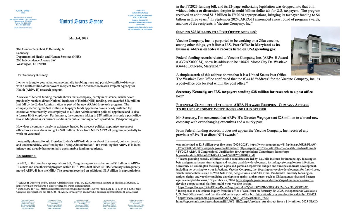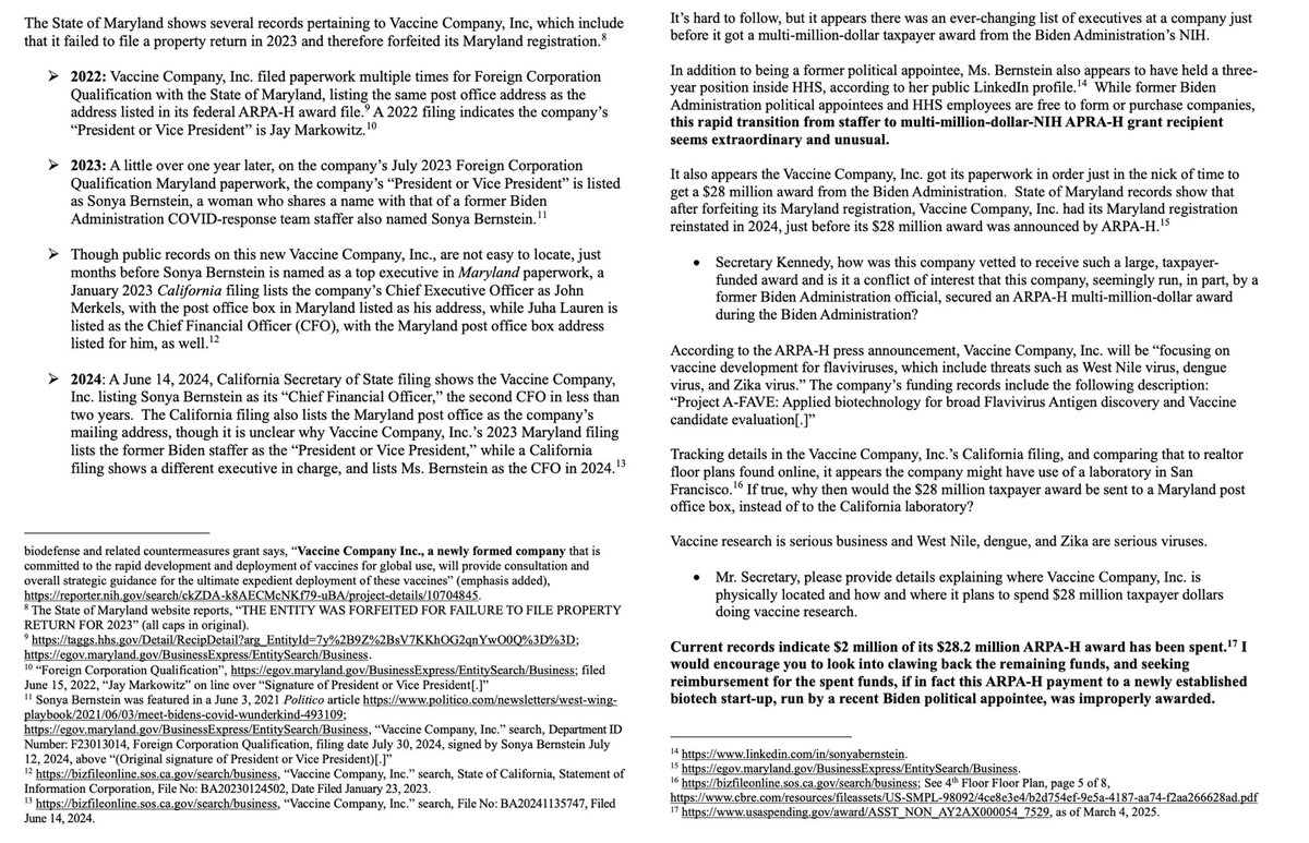 A vaccine company registered to a PO Box — and run by two former Biden staffers — got $28 million in the final months of the Biden admin, and that seems fishy. I’ve asked @SecKennedy to get the American people answers and end the practice of government slush funds! https://t.co/2gahwCBMg5