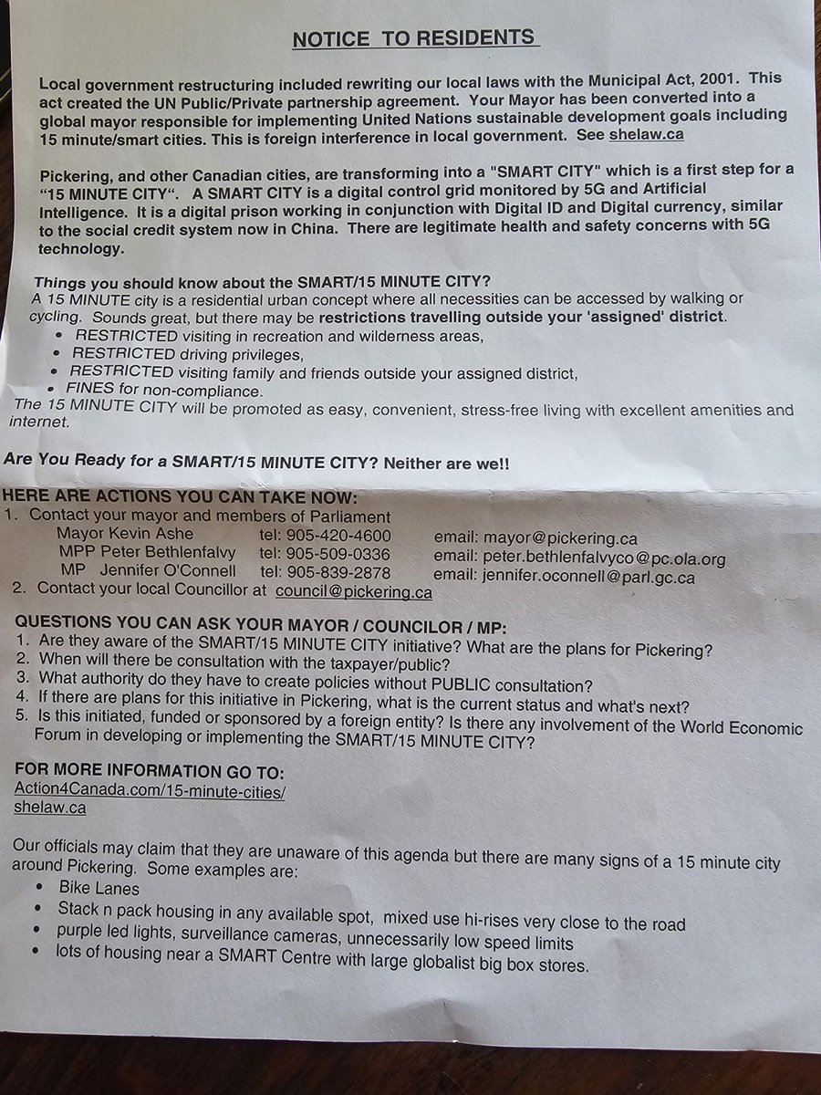 Attention Pickering, Ontario residents... and others Did you receive one of these in your mailbox this week? More information here: https://action4canada.com/15-minute-cities/