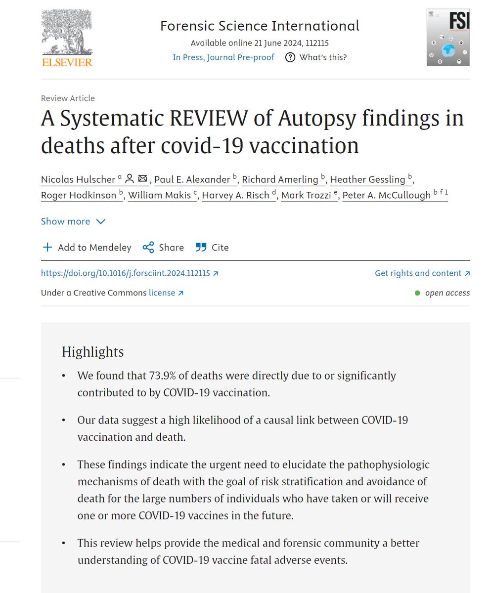 "We found that 73.9% of deaths were directly due to or significantly contributed to by COVID-19 vaccination. Our data suggest a high likelihood of a causal link between COVID-19 vaccination and death." https://sciencedirect.com/science/article/pii/S0379073824001968 *Be sure to repost, this needs to be seen by as many people as possible.
