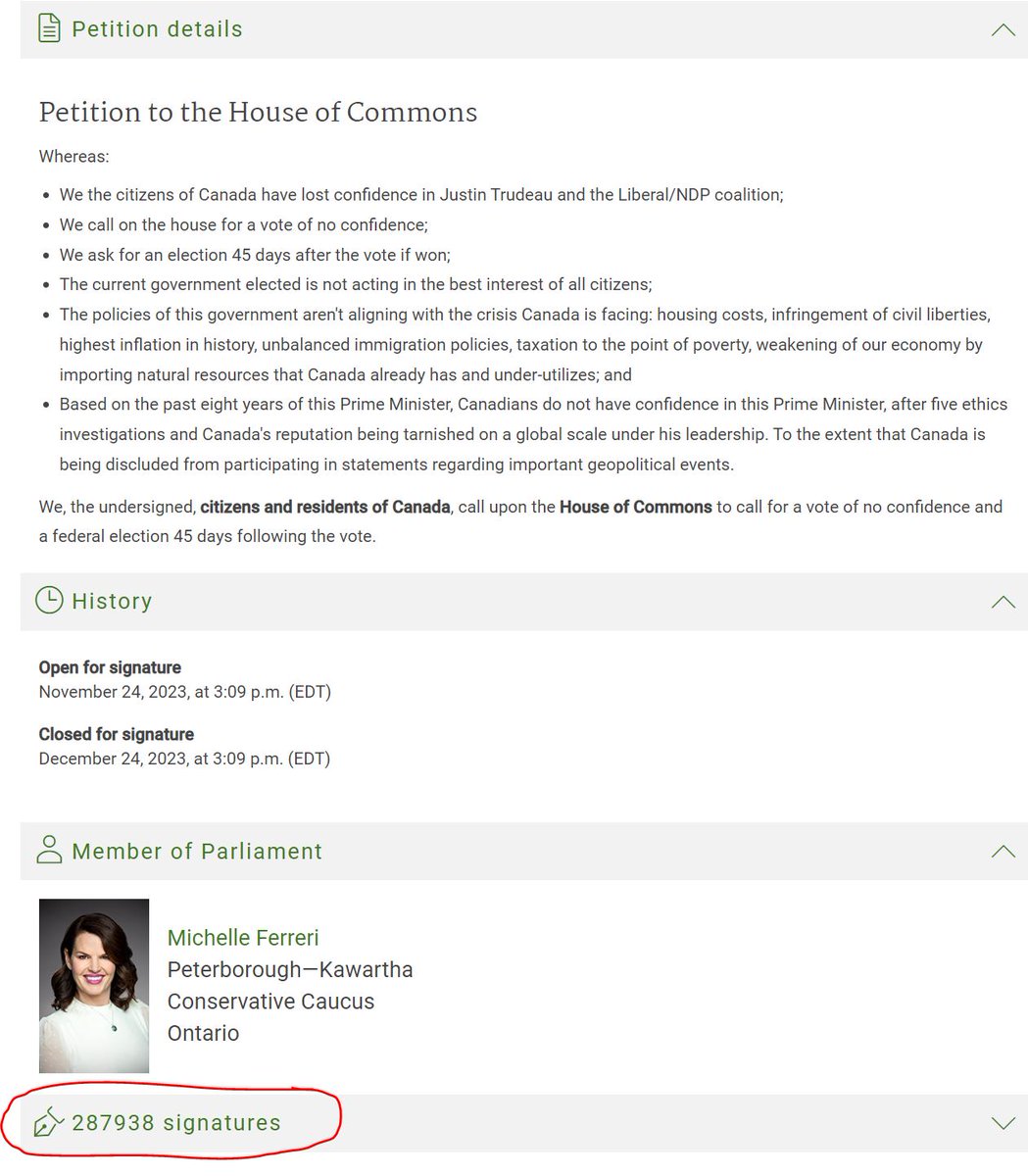 We did it, history has been made - 287,938 signatures as of a few minutes ago. This petition is now the official record holder, receiving more signatures than any other House of Commons petition in history. I've attached a screenshot of the former record holder for comparison and verification. The petition is still open until December 24th, let's see if we can make it to 500K signatures: https://www.ourcommons.ca/petitions/en/Petition/Details?Petition=e-4701 *Repost far and wide, let's keep this going. Follow @mferreriptbokaw for updates and next steps.