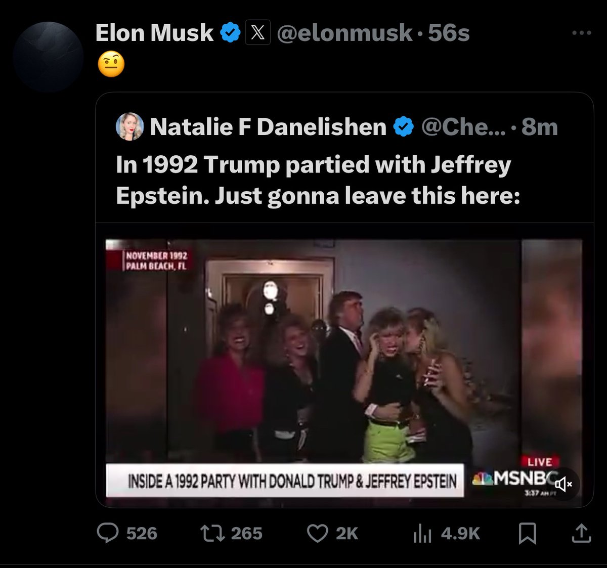 BREAKING: THIS WAS THE VIDEO SHARED BY ELON MUSK OF PRESIDENT TRUMP PARTYING WITH EPSTEIN https://t.co/qDAV5qD0de