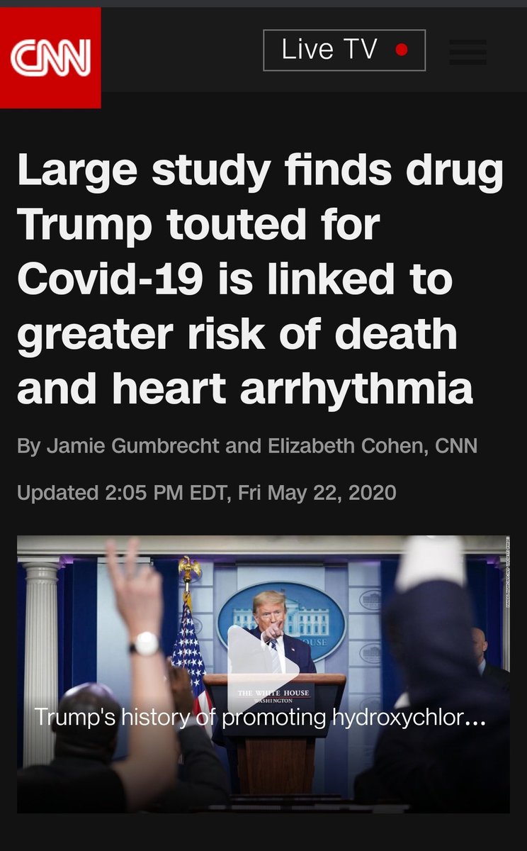 6. Twitter pundits and self-proclaimed COVID experts went into overdrive. They blamed Trump for causing the deaths of the patients who took hydroxychloroquine. (This CNN article is still on their website)