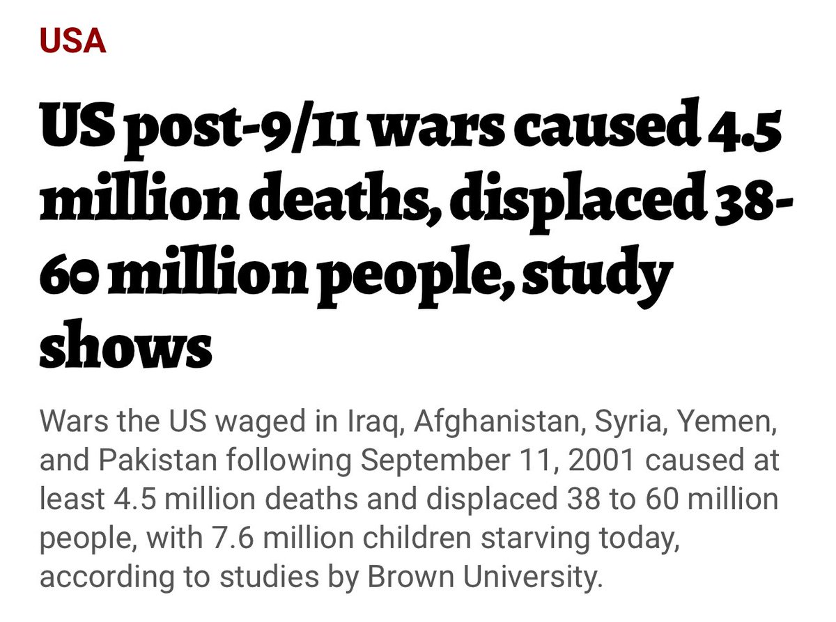 🚨🇺🇸✡️RECALL the 7 wars in 5 years goal post 9/11 primarily faught for Israel caused around 4.5 million murders and around 50 million deaths according to studies done by Brown university! #Palestine #Gaza https://geopoliticaleconomy.com/2023/05/18/us-911-wars-million-deaths-displace/