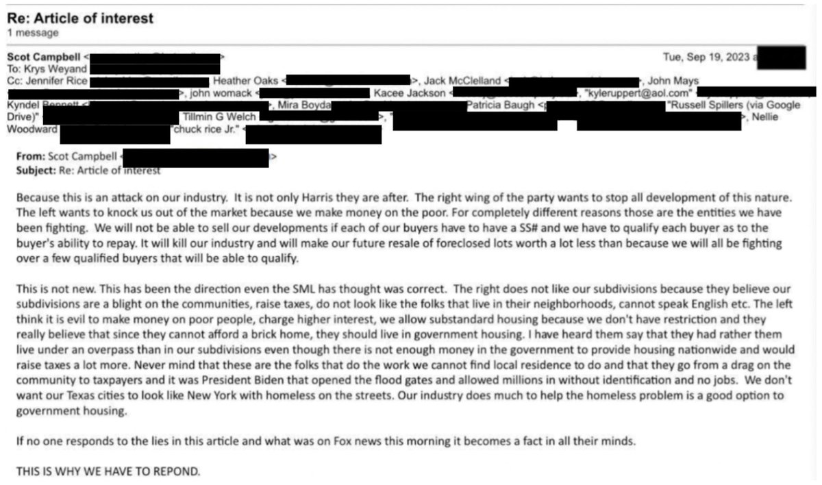 Campbell wrote this email to the leadership of the TLDA, which lobbies on behalf of seller-finance companies, after @realDailyWire dropped our first Colony Ridge investigation. He called our investigation ‘an attack on our industry’ despite seemingly confirming my report.