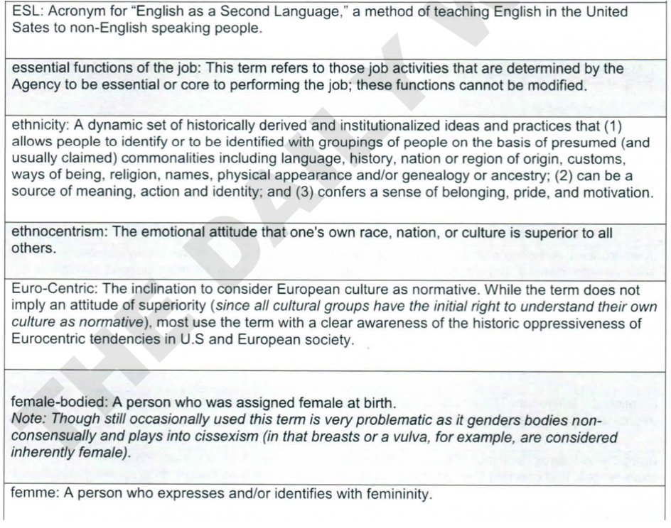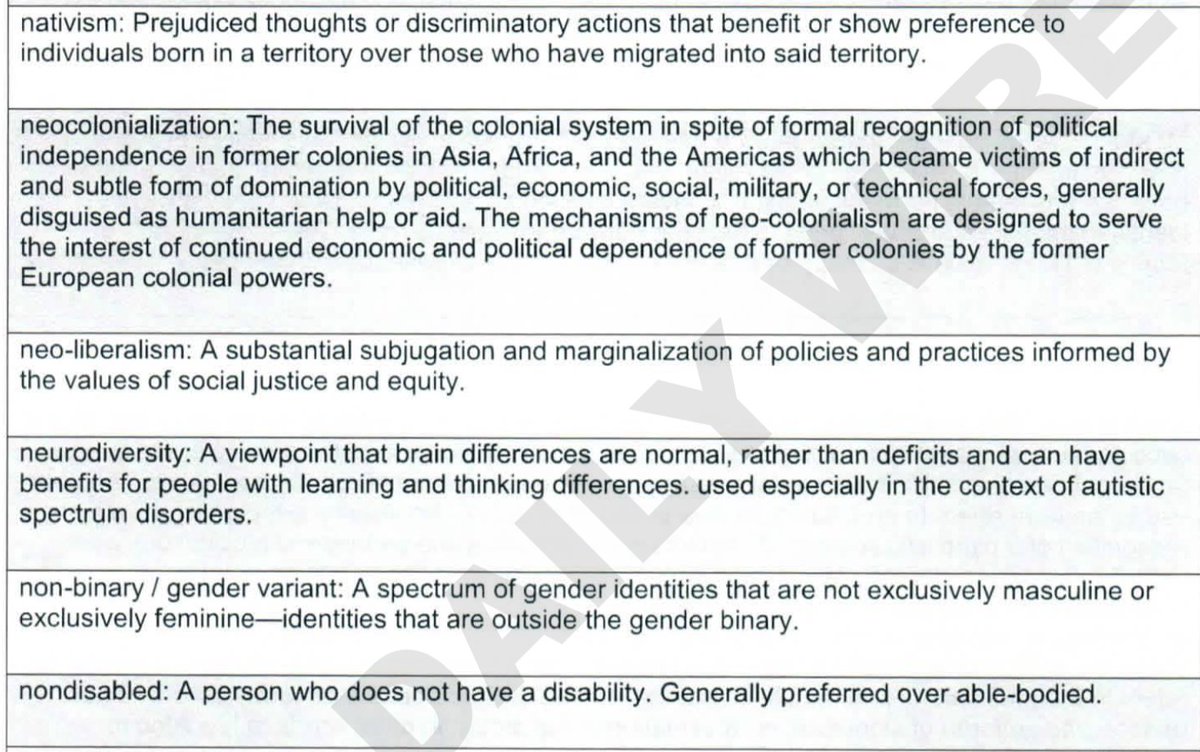 It lists 327 DEI terms over 34 pages, with words like “ze/zir,” “whiteness” and “pansexual.” The definition for “settler colonialism” blames “white European occupations of land in what is now the United States," for leading to "oppressive governance" and "white supremacy."