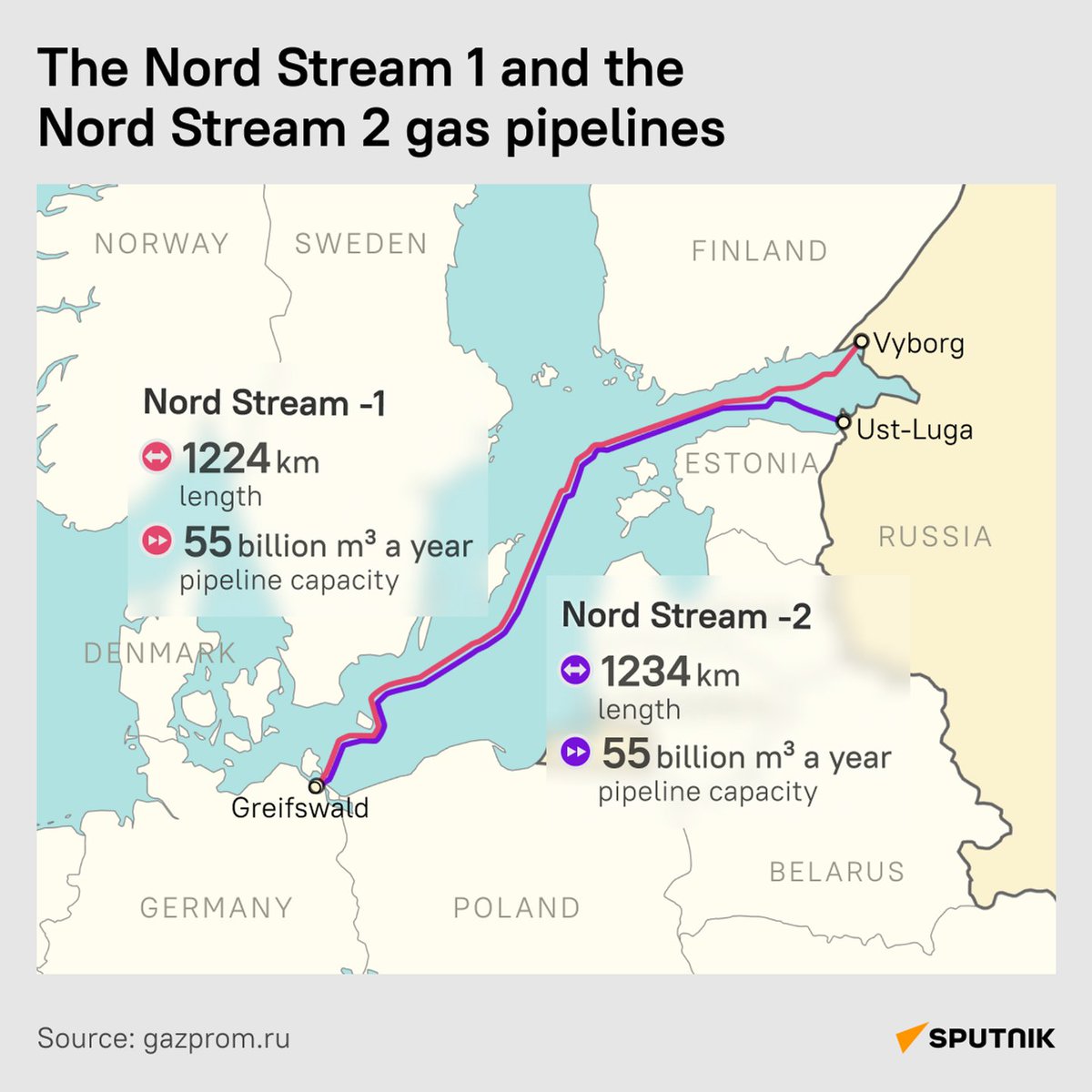 1️⃣ WHAT IS NORD STREAM? A network of 4 underwater pipelines for pumping Russian gas to Europe, two apiece via Nord Stream 1 & 2 🔸Nord Stream 1 was inaugurated in late 2011 🔸Nord Stream 2 was finished in late 2021, but never launched amid US pressure on Germany over certification