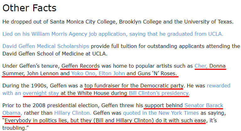 5. 'Geffen is a donor to Democratic Party candidates and organizations, and was an early financial supporter of President Bill Clinton.'