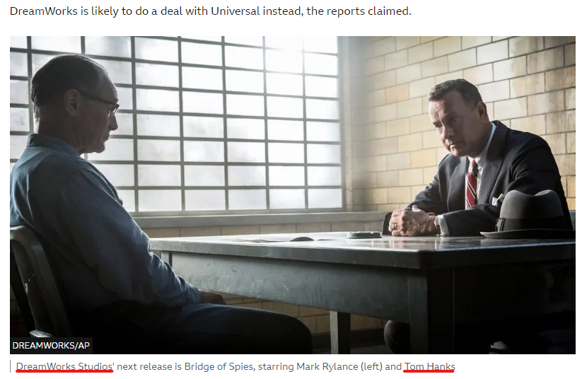 16. 'The next DreamWorks Studios film to be released will be Tom Hanks' Cold War thriller Bridge of Spies, also directed by Spielberg, which comes out in the US on 16 October.' 2015
