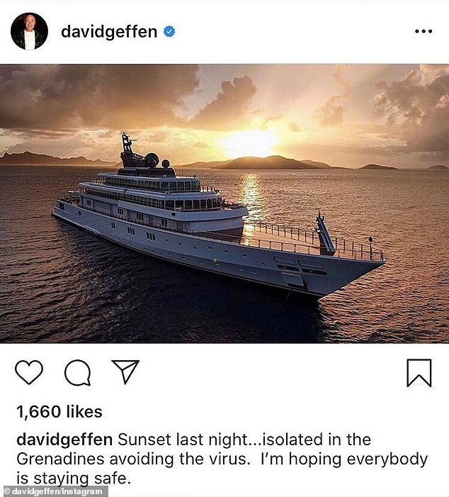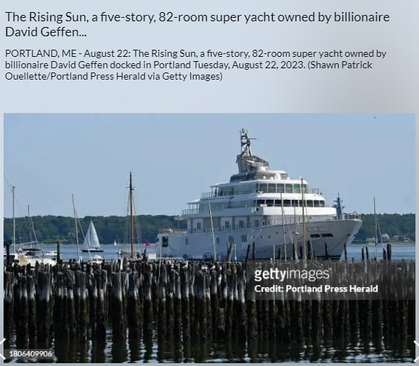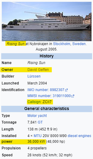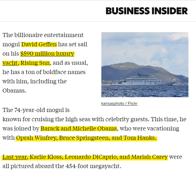 4. 'Hollywood billionaire David Geffen has been self-isolating on his superyacht in the Caribbean during the coronavirus pandemic...' 2020 https://www.businessinsider.com/rising-sun-yacht-david-geffen-jeff-bezos-barack-obama-2019-8?r=US&IR=T