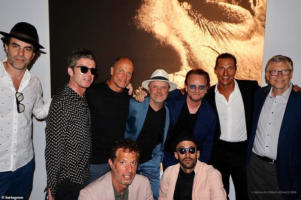 22. 'Some of these A-List stars were spotted in Monaco after attending the Google Camp. From left to right in the back: Sacha Baron Cohen, Noel Gallagher, Woody Harrelson, Lars Ulrich, Bono, Matthew McConaughey, Bill Gates. Front, from left: Guy Oseary and French photographer JR.
