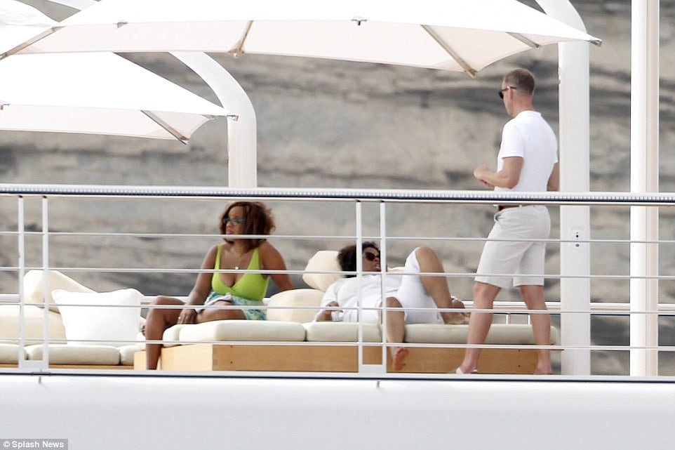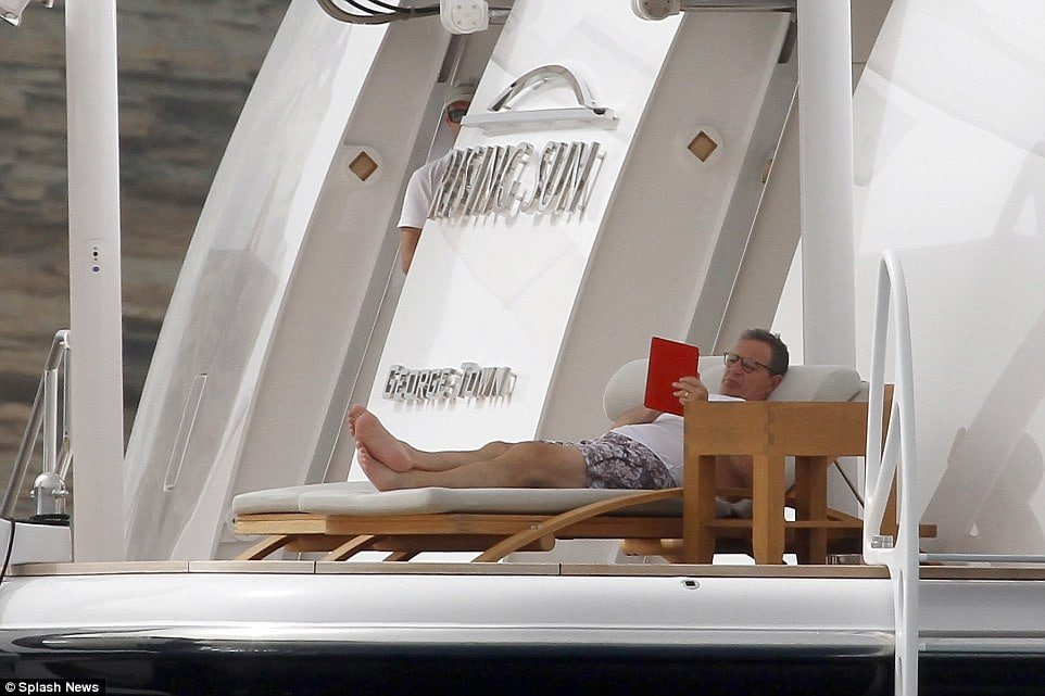 35. 'Disney CEO Bob Iger was seen reading on his iPad as he reclined on one of the sun loungers on the Rising Sun.'