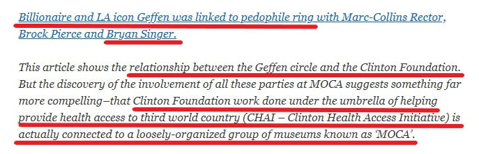 19. 'Despite many prevailing theories about the role of the Podestas, Soros and Alefantis in the Comet Ping Pong cover-up, the contemporary art-themed restaurant appears to be tied to the GEFFEN Museum of Contemporary Art in Los Angeles, otherwise known as MOCA...'