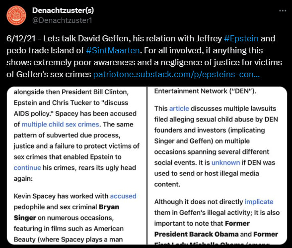 ..would be a sticker covering the genitalia reading: “If you’re offended by this, you must be a closet pedophile.”). I fully believe Kurt did this intentionally to expose the guy as a pedophile. Geffen is also very involved in the deaths of Chris Cornell and Chester Bennington.'