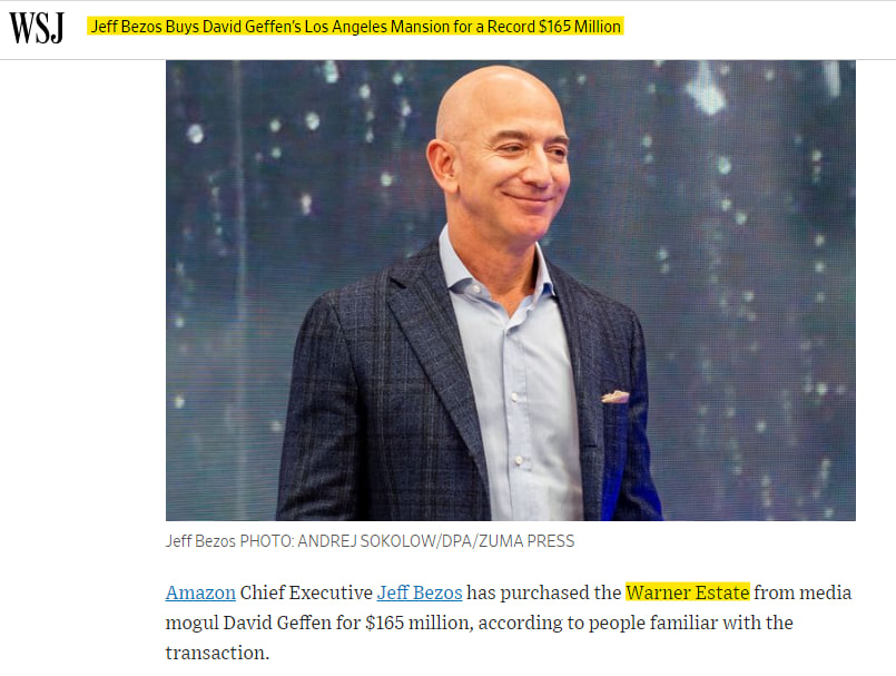 3. https://www.wsj.com/articles/jeff-bezos-buys-david-geffens-los-angeles-mansion-for-a-record-165-million-11581542020 2020