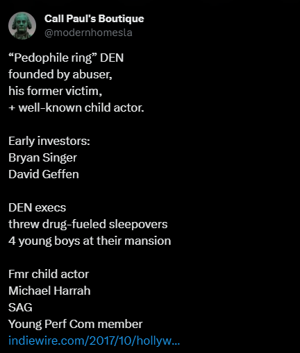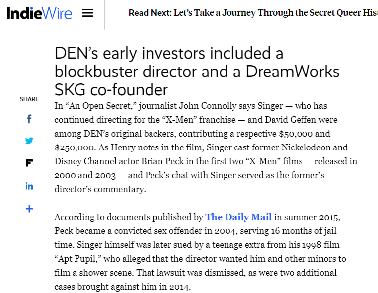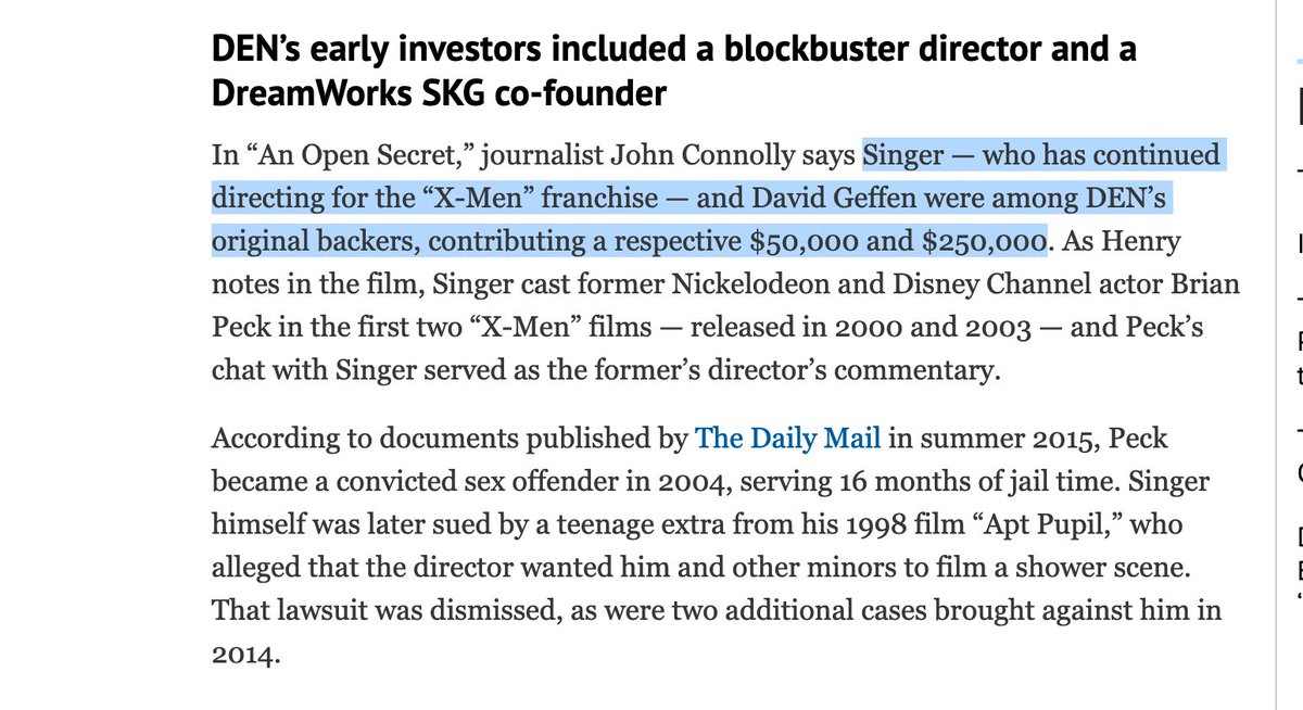 45. DEN was a notorious Hollywood company, with a party house, where many underage boys were drugged & raped.