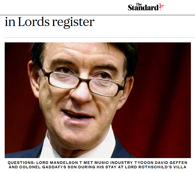 55. 'Lord Mandelson faced fresh questions over his Corfu holiday today amid claims of conflicts of interest with his ministerial duties. The Business Secretary met music industry tycoon David Geffen and Colonel Gaddafi's son during his stay at Lord Rothschild's villa this month.