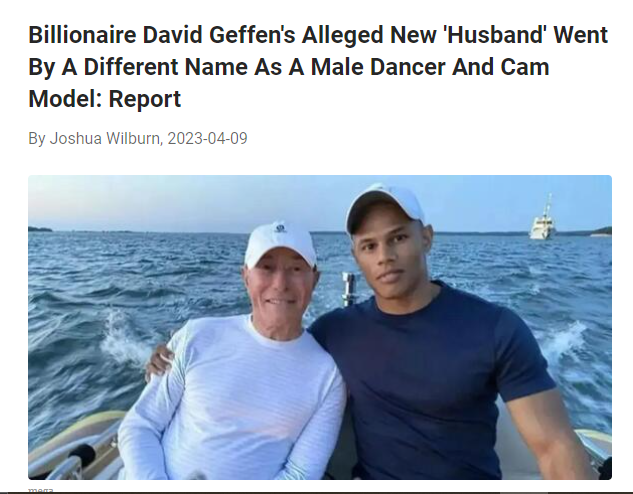 42. Billionaire David Geffen's new 'husband' is a former go-go dancer with 'super secretive' past.... https://www.dailymail.co.uk/news/article-11954831/Billionaire-David-Geffens-new-husband-former-dancer-super-secretive-past.html?ns_mchannel=rss&ns_campaign=1490&ito=1490