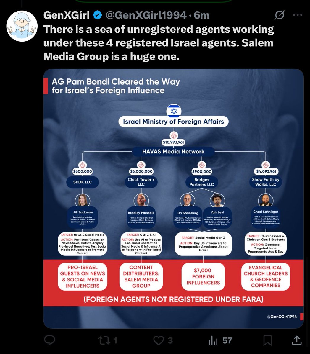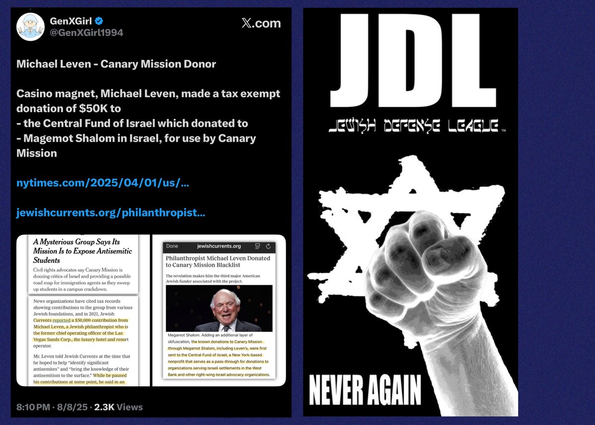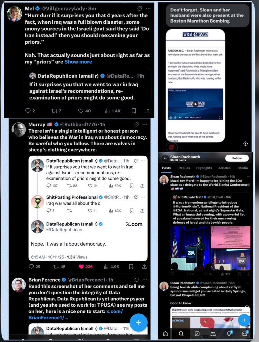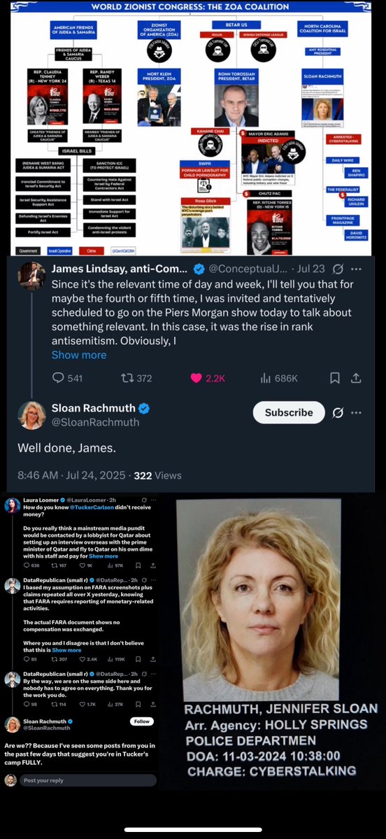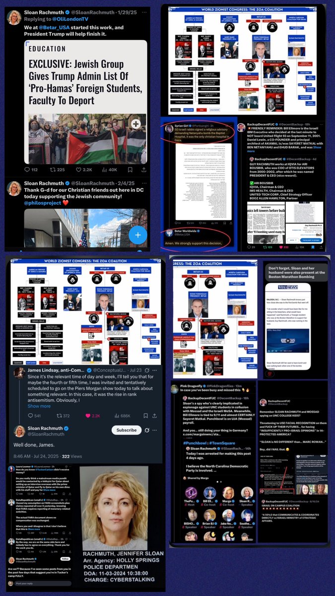 Yo, @Villgecrazylady. l’ve got TONS of receipts on this deranged ZOA/Likud lunatic, Sloan Rachmuth. Figured I’d share them with you here. Might be helpful.🙏🏼😎 For instance, how Sloan spies on American college kids w/Mossad & ICC, threatening to ruin their futures simply for having opinions that Sloan and these Israeli intel psychopaths disagree with. *Here’s a good chunk of those Sloan Rachmuth receipts, for your reference.👇 From Wolfsschanze: “I posted about a dozen of Johnny's previous Sloan & Guy Rachmuth posts under his different accounts a few days ago. He has all the receipts. You can scroll these search results for them and more: https://trutharchive.ai/search/%22Sloan%20Rachmuth%22%20%40sloanrachmuth%20Guy%20Rachmuth” *Shoutout to Wolfsschanze for graciously archiving all this. Appreciate you, brother.🙏🏼🫡 🚨MORE SLOAN RACHMUTH BACKDROP🚨 *During the “Pro-Palestine” campus protests last year, Sloan spied on, targeted and doxxed UNC college students, faculty & staff members w/the Israel On-Campus Coalition (ICC) and Mossad and worked to get Palestinian supporters suspended/expelled/fired from the university. *As THAT was happening, @MOSSADil used its TWITTERX ACCOUNT to THREATEN AMERICAN COLLEGE STUDENTS w/using facial recognition software to IDENTIFY EVERY STUDENT, RUIN THEIR FUTURE CAREER OPPORTUNITIES and RENDER THEIR COLLEGE DEGREES COMPLETELY WORTHLESS. *NOTE 1: The ICC is funded by ADAM MILSTEIN and it shares the data/intel it ILLEGALLY GATHERS FROM SPYING ON AMERICAN COLLEGE STUDENTS w/the ISRAELI MINISTRY OF STRATEGIC AFFAIRS. *NOTE 2: We found out a few days after this nonsense that these “Pro-Palestine” protests were literally fucking FUNDED and ORGANIZED by GOLDMAN SACHS and the GELMAN family (D-NY Dan Goldman is closely related to Rachel Gelman). 🚨CLIFFS: These TREACHEROUS ISRAELI/JEWISH fucks literally SET TRAPS ON COLLEGE CAMPUSES for HUNDREDS of UNSUSPECTING NON-JEW AMERICAN COLLEGE KIDS TO FALL INTO, which ISRAEL could then WEAPONIZE AGAINST THEM AND POSSIBLY FUCK UP THEIR FUTURES FOREVER. UNCONSCIONABLE BULLSHIT. (ICC = UJA/AIPAC/Mossad/Adam Milstein)