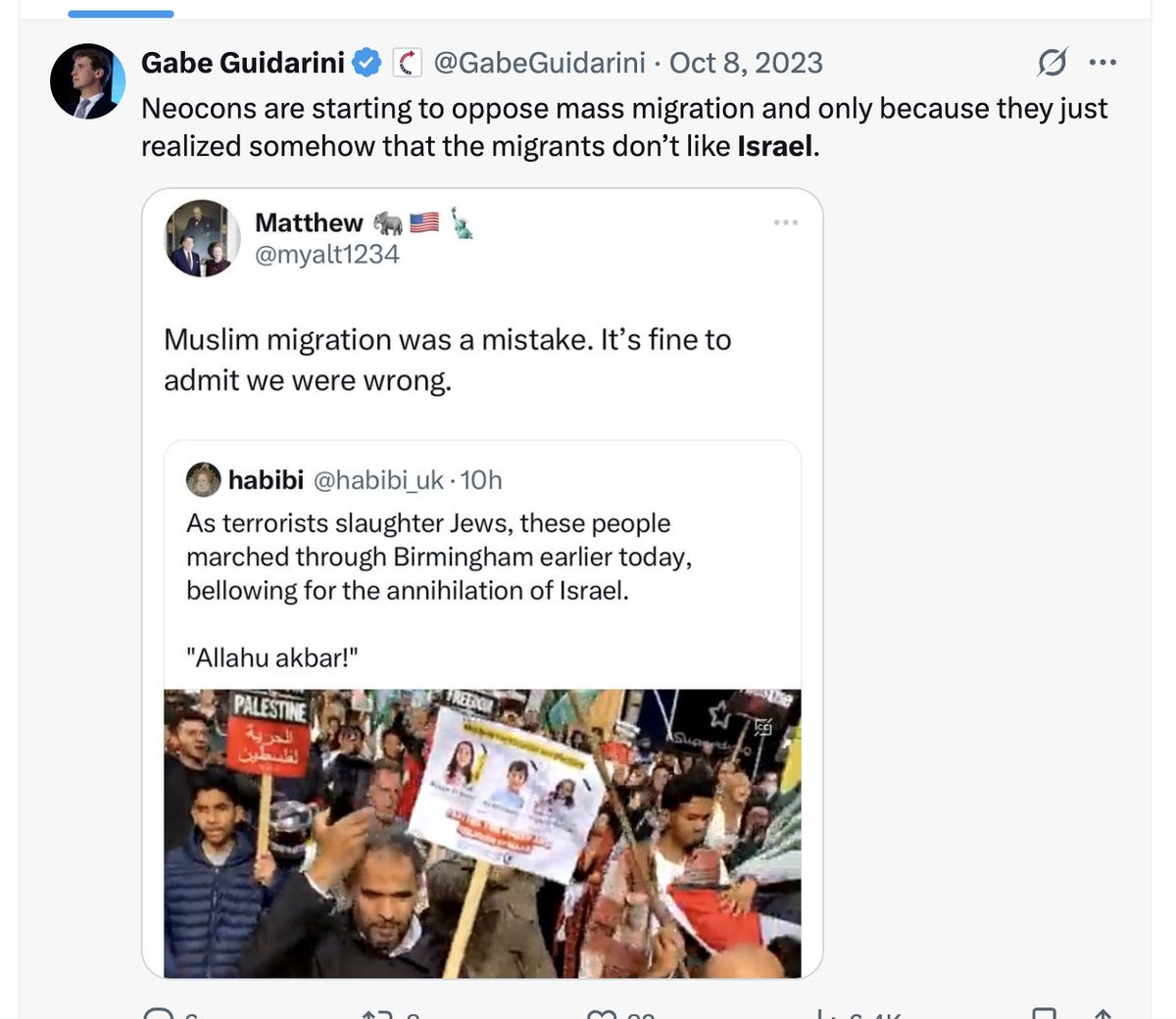 When James Lindsay says “Israel is a conservative country” it tells you everything you need to know about what “conservative” means to the anti “woke right.” If Israel were a U.S. state, it would be left of Massachusetts. It’s arguably the gayest country on earth, transitions kids at government expense, has socialized medicine, and the government is buying up the means of production. So what does he mean by “conservative”? He means that Israel supports the managerial class in the global establishment that’s ran the world for the last 70 years. And that’s who Lindsay works for. He’s not conserving values. He’s hasn’t any. He’s conserving the power structure that’s run Western Culture into the ground.