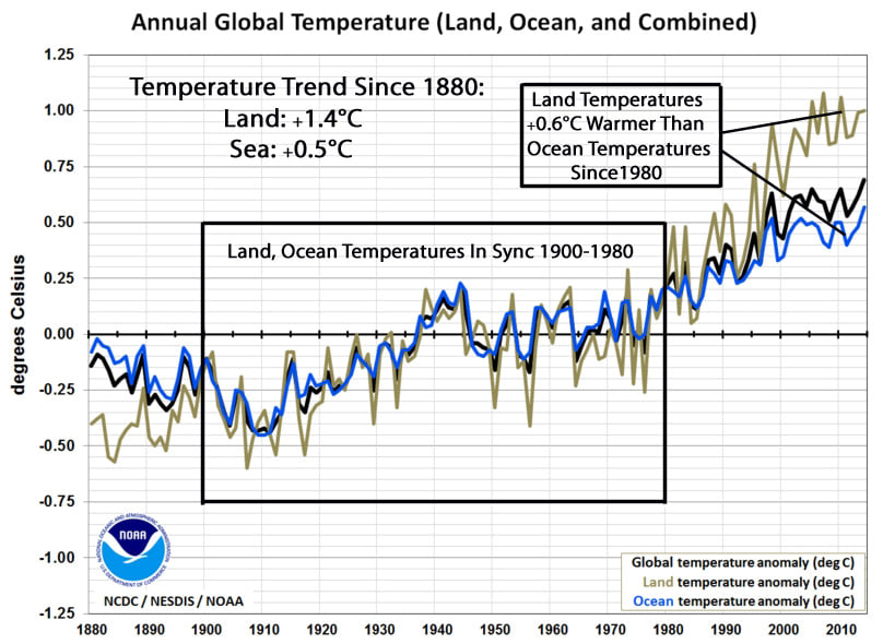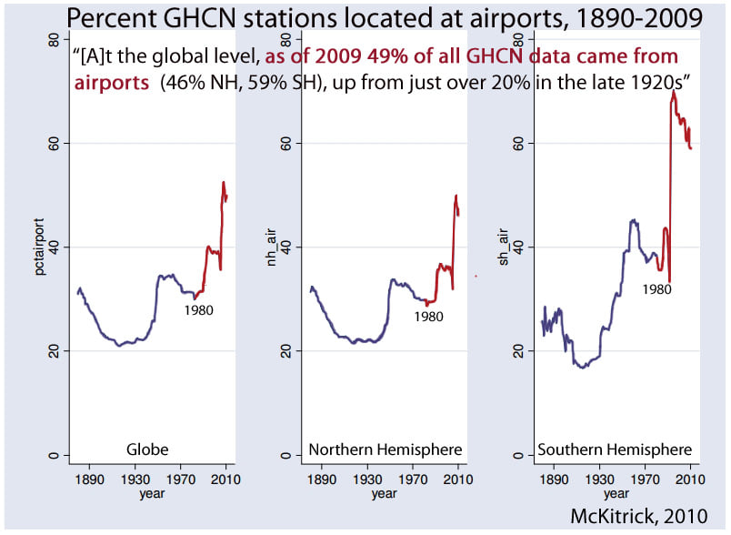 Wetterstationen in den Bergen fallen weg,Stationen auf Flugplätzen kommen hinzu. Dadurch wird die Temperatur nach oben getrieben. Dies zeigt der Unterschied bei der Zunahme der Lufttemperatur im Vergleich zur Meerestemperatur. Somit ist die wahre Erwärmung nur 0,6-0,7 Grad. https://t.co/iPElbT6xQt