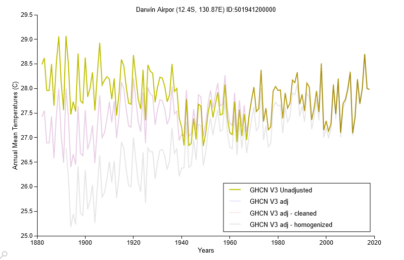 Thread öffnen! HÜTCHENSPIELER DER WISSENSCHAFT! Hier Original-Daten der NASA ,die noch nicht gelöscht wurden mit Link zur NASA ! In den Rohdaten gibt es eine Abkühlung seit 1900 bis heute. Plötzlich wurde die Vergangenheit kälter durch Manipulation. Bild vergrössern. https://data.giss.nasa.gov/cgi-bin/gistemp/stdata_show_v3.cgi?id=501941200000&ds=7&dt=1&fbclid=IwAR1NJRPRUraRPhybS29g6GBJzXAFp4X1rWusWCHi4rXuLk2Fm9Av_7qYsxY