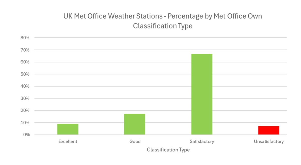 In September 2024, an FOI request revealed a brutal contrast in assessments. While international standards classify nearly 80% of Met Office weather stations as unreliable, the Met Office itself rates over 90% of them as “Excellent,” “Good,” or “Satisfactory.”