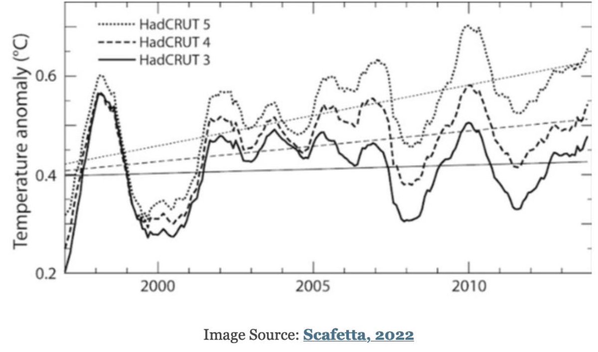 Beyond station placement, the Met Office has been caught tampering with historical climate data (HadCRUT). Older readings from the mid-20th century have been lowered, while recent temperatures have been artificially increased.