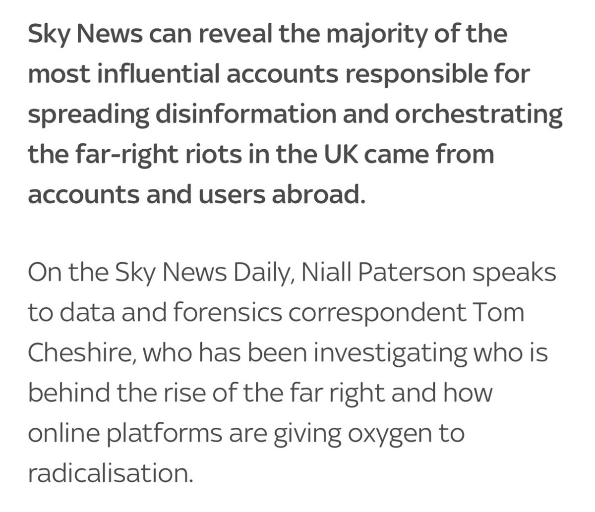 For context, a recent Sky News investigation revealed that most of the influential accounts driving "disinformation" and "orchestrating" "far-right" riots in the UK originated from overseas users.