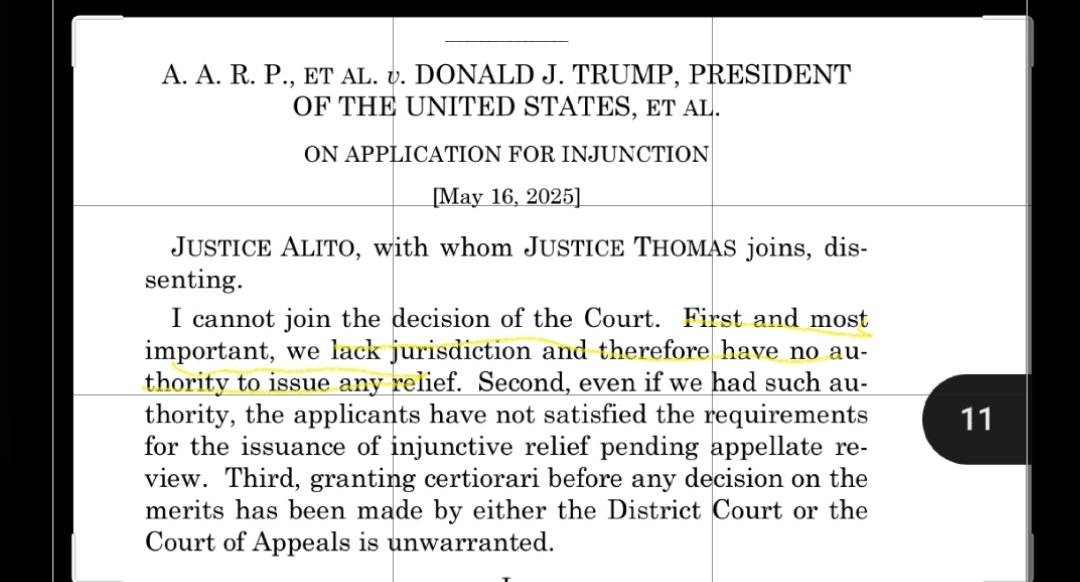 @StephenM IGNORE SCOTUS! ALITO IS CORRECT in saying "We lack Jurisdiction and therefore have no authority to issue relief" SCOTUS now believes they are in charge of National Security & the CARTEL & CRIMINAL ILLEGAL AGENCY ACLU IS IN CHARGE OF IMMIGRATION. Time to supend Habeas Corpus! https://t.co/TQ1F1Q3Gd7
