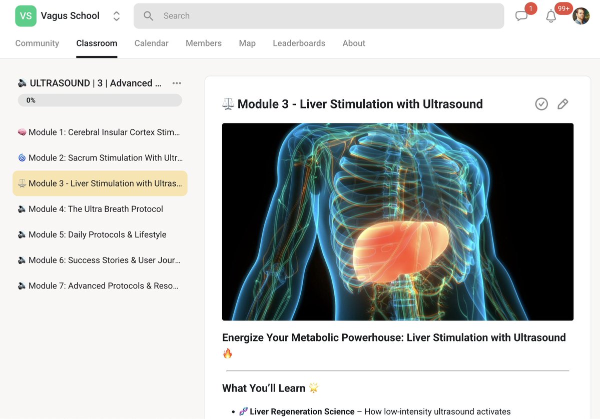 Sessions can be short — 10 to 20 min, a few times per week — but consistency is key. Protocol shared here: https://www.skool.com/vagus/liver-stimulation-module-released-this-one-is-gonna-be-yuuge 11/15