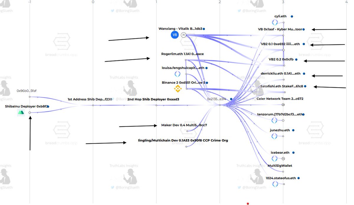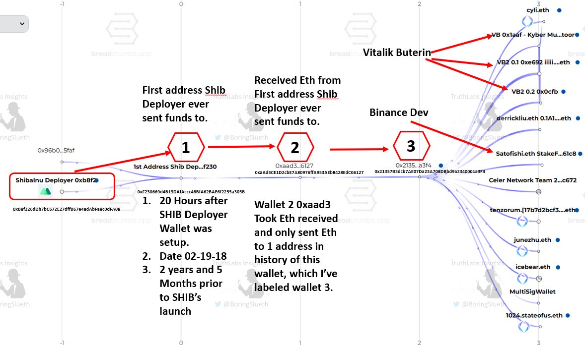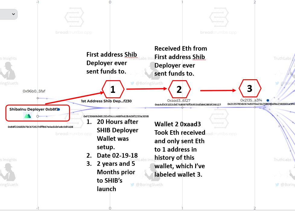 I was curious, and decided to look into the very first outbound Eth transfer that the Shib Deployer wallet made. Less than 24 hours from the wallet being created, it sent Eth to another wallet - 0xF230. 0xF230 then sends the ETH to 0xaad3, which is the last trx it made. 3/8🧵