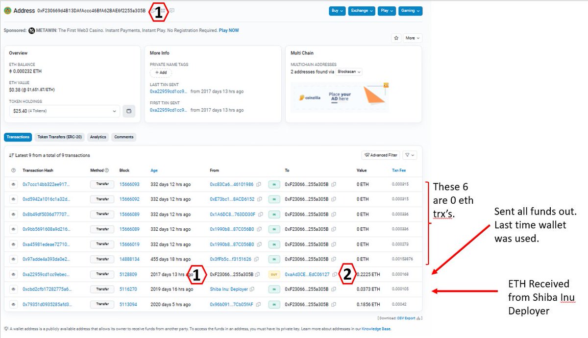 I was curious, and decided to look into the very first outbound Eth transfer that the Shib Deployer wallet made. Less than 24 hours from the wallet being created, it sent Eth to another wallet - 0xF230. 0xF230 then sends the ETH to 0xaad3, which is the last trx it made. 3/8🧵 https://t.co/0ZZXgpBDDv
