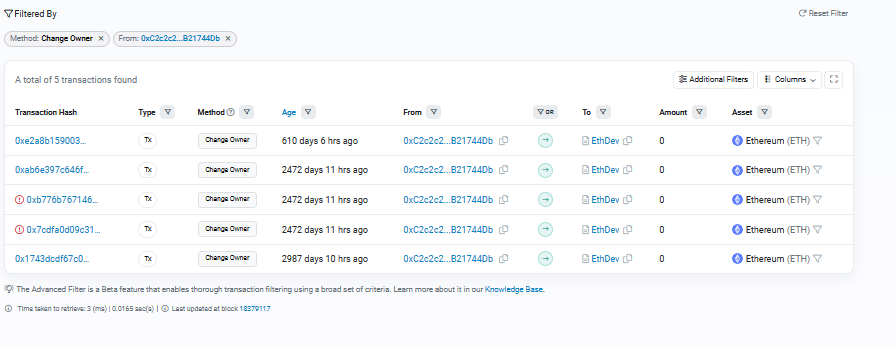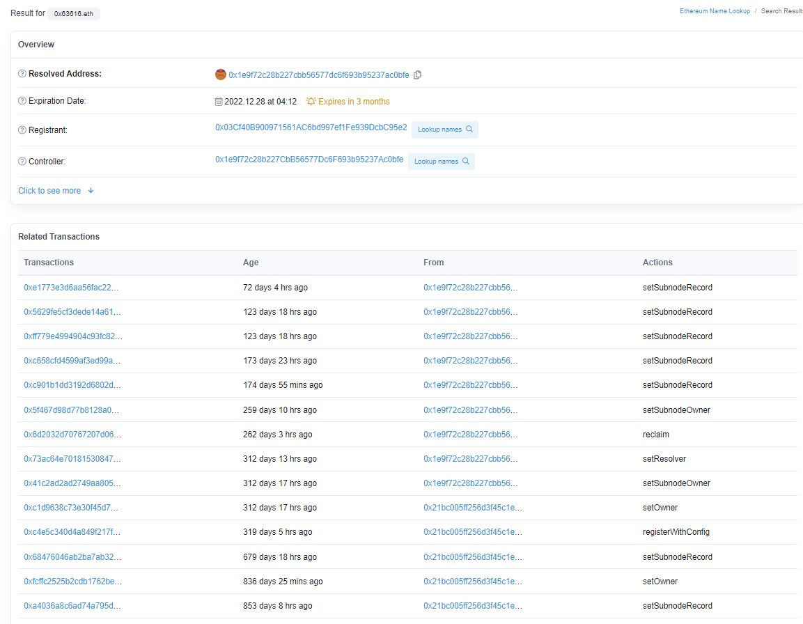 Here you can see wallet 0x1e9f Set the Ownership of Biricik.eth to the current wallet address of 0x5f78. This is also the wallet address used to originally register biricik.eth. Okay, so wallet 0x1e9f is also Biricik.eth. What else do they own? 👇 https://etherscan.io/enslookup-search?search=biricik.eth 2/6