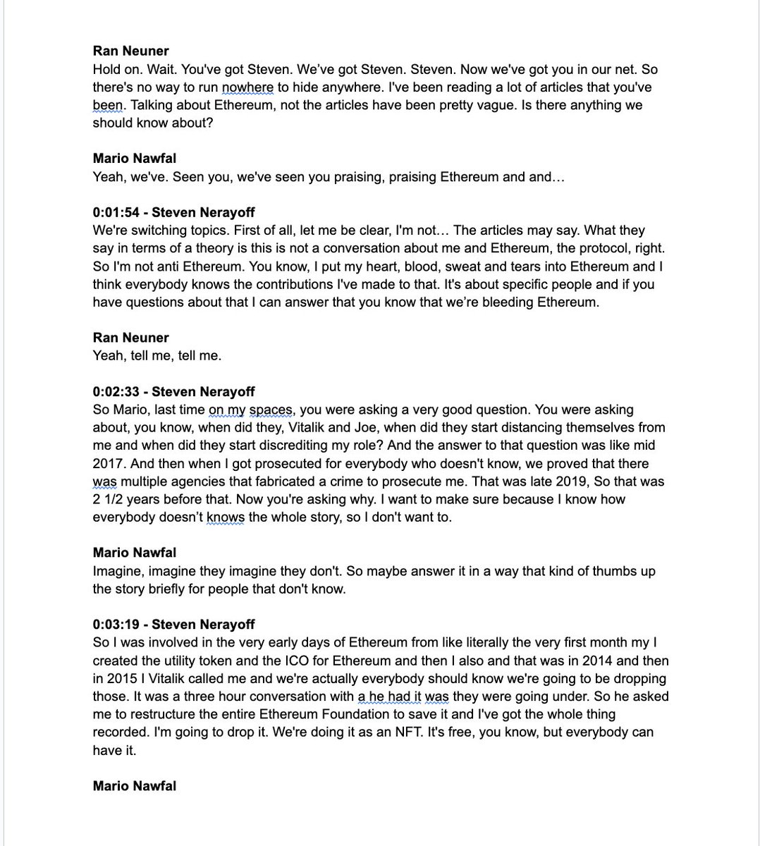 Ok can you be more articulate than a Neanderthal? You don’t care about Ethereum. Otherwise you would care about what I’m saying. This is not anti Ethereum but hope to save it and crypto. After years of taking shit & being discredited let me tell you something, I’m more responsible for Ethereum’s ecosystem existing than anyone. Get that through your articulate well mannered skull. And I’ve got the receipts to prove it. I created the utility token & ICO . You should be thankful. What did you do Mr. Ethereum? When look at the records it says “Designer (Web/UX/UI)”. Wow, where would we be today I’m crypto without your contribution? For someone who’s done shit in this space you certainly have a big damn rude mouth. Do you not care that I proved to you Vitalik lied to all of you about my role and caused you to all discredit me? Why would he use you like that? You trust someone who does that? Here is the proof he lied & I’ve got more coming. You know how all the people around SBF felt who supported him. Well multiple that by 1000 & that’s how you will feel soon enough for supporting these fakes & clearly you just think short term price you don’t give a shit about crypto. Go back to your cave or be more respectful. https://x.com/stevennerayoff/status/1719309855532491218?s=46&t=g102eMvRJLOAjqErkVioYw