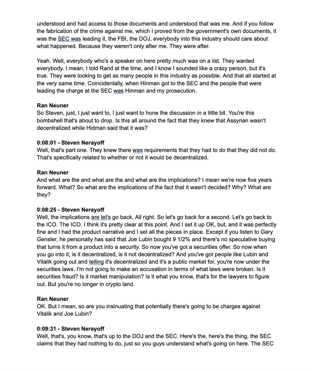 It’s Real & Not a Conspiracy 🔴 The government with private actors such as Vitalik & Lubin discredited & tried to imprison me to cover up this exact issue. My life was destroyed because I knew too much. I plan to hold people accountable & anyone I find was involved is on my legal radar. 🔴 This was not a conspiracy. Red herring arguments are blurring the real issue. Joe bribing an official is too simplistic. This was a comprehensive plan of government & private actors with an alignment of corrupt interests. No need to bribe anyone. Everyone just did things that were either conflicted or outright illegal to benefit. Clayton & Hinman hypocritical & disgusting about-faces putting million in their pockets is in your face. Bribes are red herring distraction & personally infuriating if it discredits me. End it! 🔴 Let’s set the record straight. The “DAO Report”, “Free Pass” & going after Ripple were part of a much bigger plan. As for Ripple the government, banks, ConsenSys & Ethereum all wanted to replace it but couldn’t catch them in a fair fight so they had to do the DAO Report, free pass & the lawsuit. This was much bigger than one goal of Ethereum versus Ripple. 🔴 What was the overall objective? Having control over a protocol the government blessed as decentralized but controlled by a few parties to serve the needs of all involved. Ultimately government & banks get one main protocol which they pretend is decentralized, permissionless & public but in fact had players like Lubin & Vitalik that would do what they wanted as it was concentrated & controlled both effectively & actually. 🔴 Beyond the government, it served the needs of massive frauds committed through Token Foundry & untold other parts of crypto which is beyond the scope of this but it’s on chain so people can figure it out. The main reason they haven’t “figured it out” is because almost everyone is being paid to distract “look over there”. In turn the government looked the other way while they committed massive fraud. At the same time many of these actors such as Hinman & Clayton have become fabulously wealthy as a result of the corruption they led. 🔴 I REPEAT: VITALIK & LUBIN COULD NOT HAVE BELIEVED ETHEREUM WAS DECENTRALIZED AT THE TIME OF THE HINMAN SPEECH. 🔴 🔴 Why is anyone concerned about Ethereum if Lubin & Vitalik are held accountable if it’s decentralized unless they know it’s not. If Satoshi showed up & was arrested nobody would care. 🔴 They also turned Vitalik into a false prophet who has accomplished nothing but to distract the public from the fraud. You heard how lost he & Lubin were on the recordings. My advice which proved to be dead on target years later but Vitalik went to China & Lubin used his limited IQ bandwidth to copy my invention to churn out untold fraudulent ICOs. 🔴 Why have they done nothing with Ethereum? Simple. It’s more profitable to “pretend” to build an ecosystem while committing massive frauds then create DAPPs people will use. Look at the track records of all the ICOs. They profited untold billions but achieved nothing. These are facts. Public got fleeced & they profited while most projects just died off. Rinse & repeat. 🔴 My false SEC led prosecution with DOJ & FBI mirrored events in these efforts & by the same people. Why? Because I was the one person who could unravel at least the free pass. Some involved Clayton, Hinman, Marc Berger, Valerie Szczepanik, Jon Daniels, Jon Enright, Marc Bini, Andrey Spektor, S/A Jordan Anderson, S/A Andrew Cropshor. 🔴 And my alleged co-conspirator, “government agent” Michael Hlady. 🔴 Look at what I just accused above. If it’s false surely someone will come after me? They won’t bc it would be legal destruction for them. This is proof. @AshleyPROSPER1 @MoonLamboio @sentosumosaba @Ripple_XRP1 @NerdNationUnbox @Leerzeit @cowboycrypto313 @blackberryXRP @Fame21Moore @MrManXRP @jungleincxrp @BoringSleuth @xrpcoupe74 @UtilityTheory @ZachRector7 @Crypt0Senseii