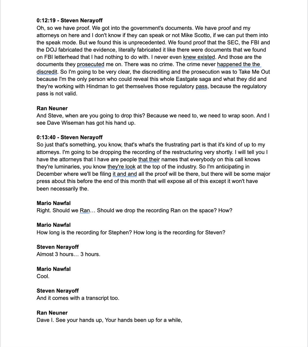 In a January 2019 meeting, CTO of @CloudParc Tom Wong admits that @StevenNerayoff was mixing intercompany finances. Whether or not employees of Cloud Parc Inc got paid was entirely dependent on Steven's external investments. Perhaps Mr. Nerayoff would like to share with the class why I had to wait until March of 2019 to get paid for the work I performed in October of 2018. And why Cloud Parc Inc continued to operate under the auspice that it was a legitimate company when it reality they were bankrupt. And I'm not even selling my evidence as an NFT like someone else I know ;) #NerayoffGate