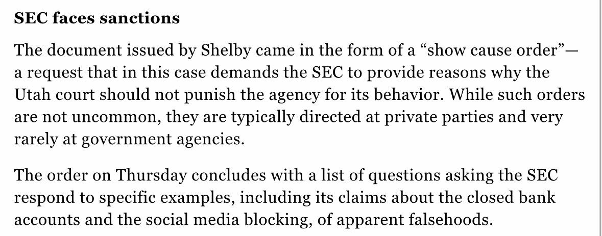 🚨SEC HAS GONE COMPLETELY ROUGE🚨 👨⚖️Think the SEC’s actions in this case were bad? Allow me to give you a mere glimpse into just some of the illegal acts the SEC committed against me that I uncovered. Most of this is publicly filed in my motion that finally got the case dismissed after 3 1/2 years. 🕵️♂️Tried to “Find” a Crime: The SEC investigated me for years, often under false pretenses, despite no indication of wrongdoing & found I didn’t do anything wrong. But being an honest businessperson didn’t stop them from continuing to come after me. 👇 🤥Led Fabrication of Crime: The SEC, with FBI & DOJ, fabricated evidence to create a crime that never happened leading to a malicious prosecution of me for 3 1/2 years. 👮♀️Led a Criminal Prosecution: The SEC is a civil regulatory agency, yet it led a (fabricated) criminal prosecution against me, which is outside of their scope of enforcement. 📄Withheld Evidence: Documents I requested from the SEC were denied because the DOJ lied in court filings saying the SEC wasn’t part of the prosecution. ☠️Issued Illegal Subpoenas to Hide Evidence & Their Role in my Prosecution: The subpoena was issued *on a criminal matter* which is outside of the scope of the SEC’s jurisdiction as a civil agency. They then filed that subpoena under a different, unrelated case so as to conceal its existence. Yet Congress won’t issue a legal subpoena against the SEC. 🧙♀️Led a Witch-Hunt Against Crypto: During my prosecution which was led by the SEC I was under extreme pressured to give information on the leaders of the industry despite having no reason to believe these people committed any crimes. I was forced to risk decades in prison by refusing to cooperate. 🤯The SEC admits they have 14 Gigs of data on me despite supposedly not involved in my case?! Then they say I have to wait at least three years before they will even begin to review my request for those records! Make it make sense?!?! 🤬 This is just a sampling of the illegal activities the SEC did against me…when will they be stopped?! 🤷♂️👆 #SECStabilizationAct @WarrenDavidson @PatrickMcHenry