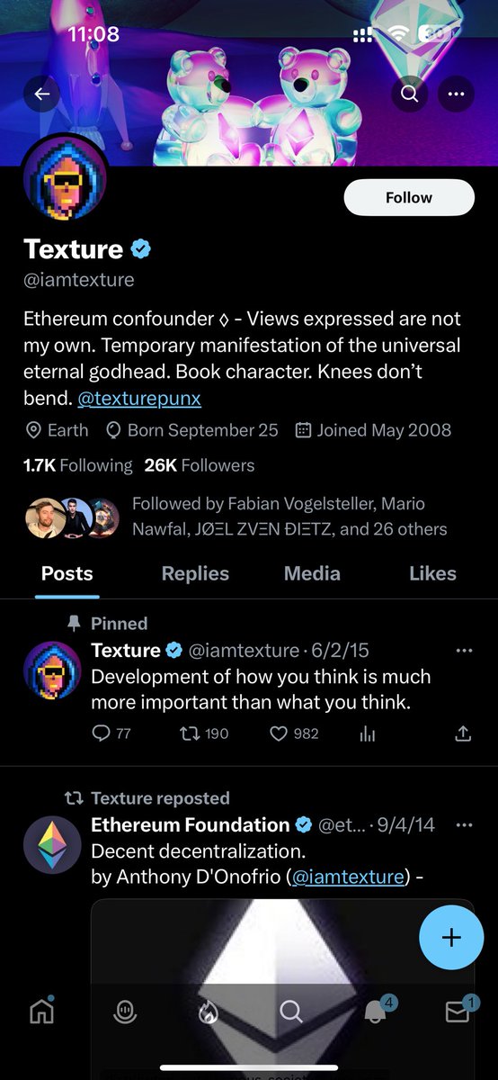 @iamtexture Legit?! You go insane over a title but call yourself a “Ethereum Confounder”?! Well guess you have nothing else to fall back on 🤷♂️ Wtf is confounder anyway? Like co-creator lol. You don’t have to reply we both know… Dude read your pinned tweet… Back to life… https://t.co/xuPTId9IFr