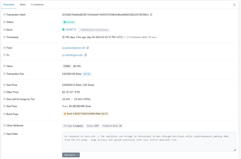 Why is one of the Core Devs with Keys to Vitalik and ETH's Wallets, as well as 1Inch, GnosisSafe, and others sending on-chain messages to the largest Exploiters to get them to launder their money thru @pulsechaincom? Proof in the 🧵below. I believe I know why 1/7🧵