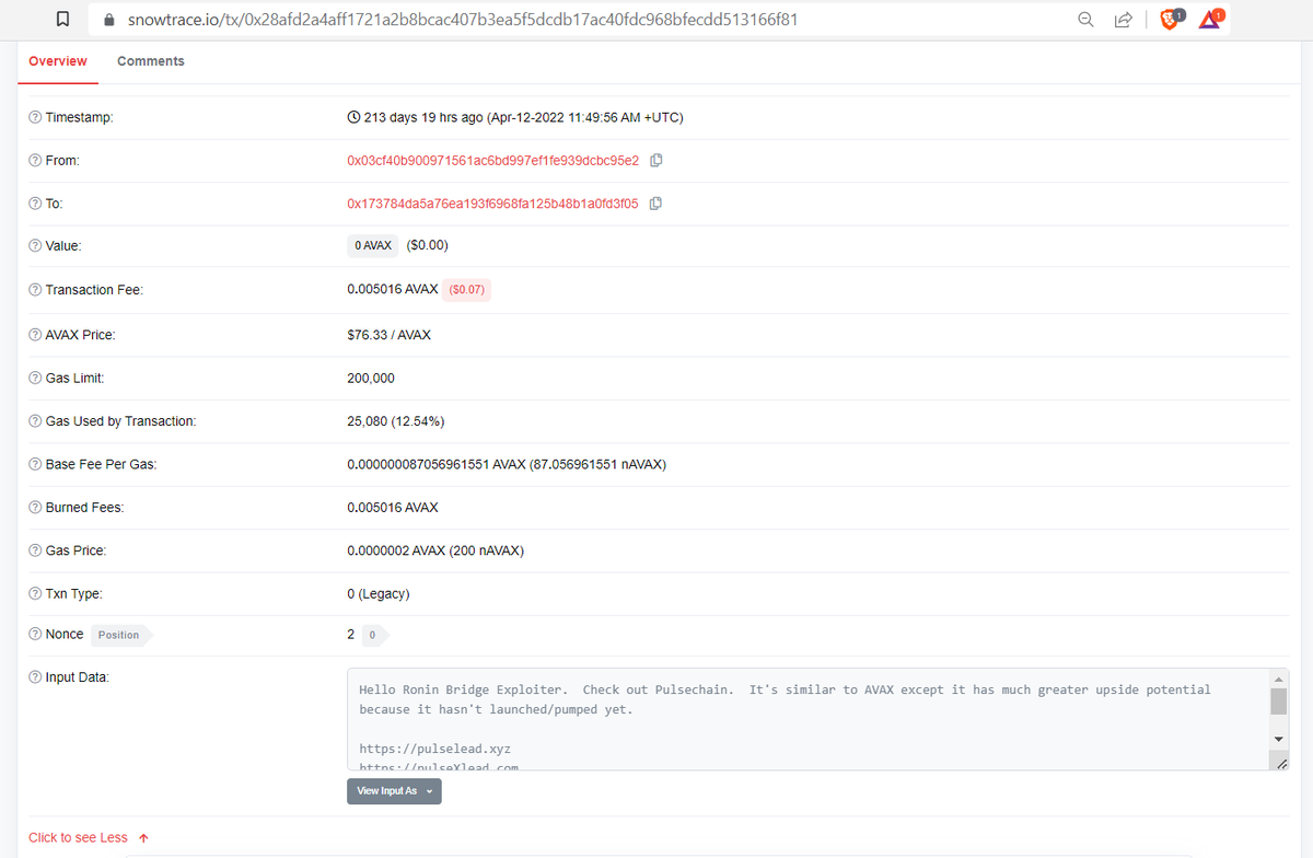 And here is our same wallet contacting the Ronin Exploiter on Avalanche https://t.co/s6IHEjXCz8