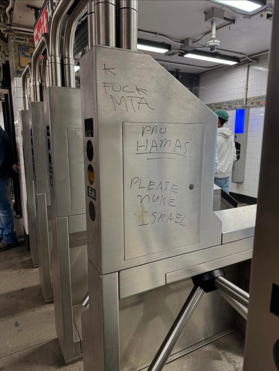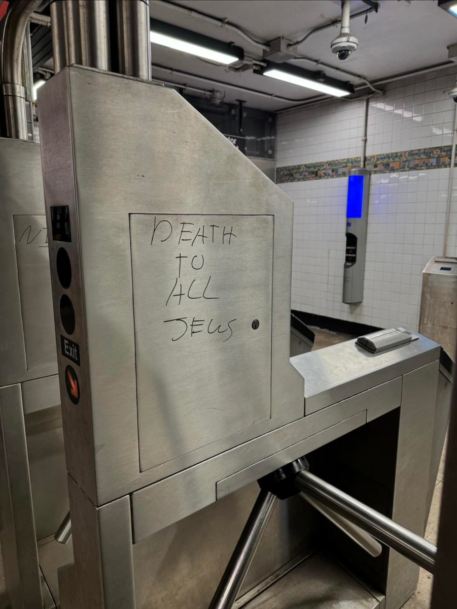 NYC - startling antisemitic graffiti spotted on the L platform at 1st Ave near the Ave A exit that includes “Death to all Jews” It’s not enough to erase this - find those responsible & prosecute for a hate crime/defacement of public property. @NYPDHateCrimes @NYCTSubway https://t.co/bIE20WEoZr