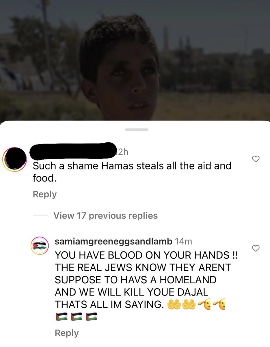 Samira Rajab, a respiratory therapist, tells a Jewish user on Instagram "WE WILL KILL YOUE DAJAL [deceiver] THATS ALL IM SAYING". Her Instagram also contains an Israeli flag with a swastika Nazi flag being unrolled underneath. Is this your employee @HMHNewJersey? https://t.co/g57rGkKLxM