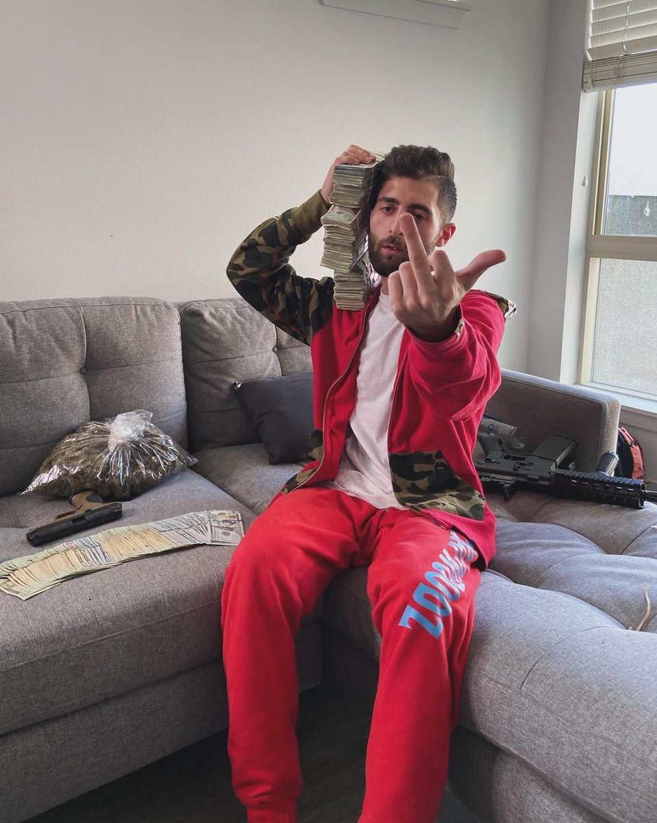 Ahmad Takleh's Instagram post showing arms (including a semi automatic weapon of sorts), pounds of marijuana, and cash along with his face from the video and arrest/charges from 2019. https://t.co/AsYllzWU0Y